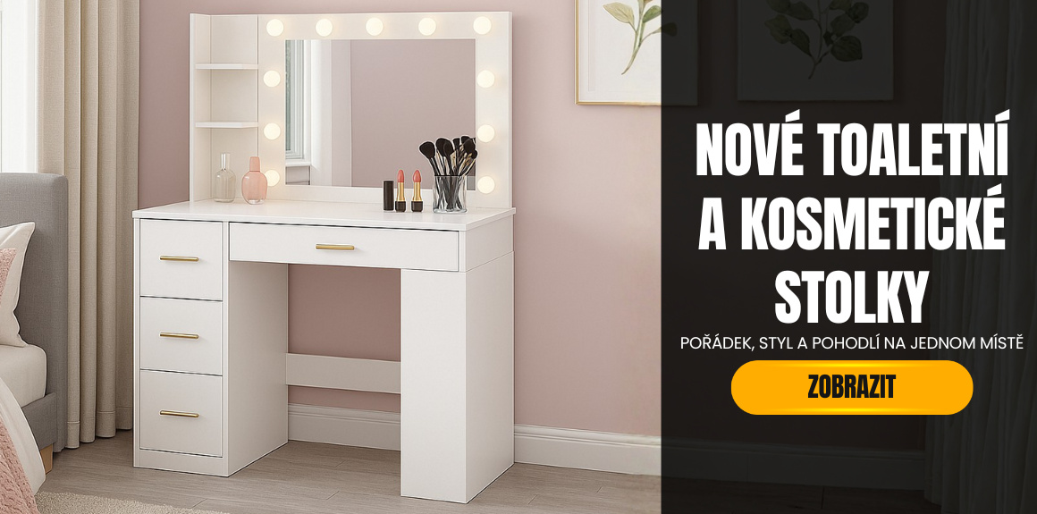 Aga Toaletní stolek se zrcadlem, osvětlením a el.zásuvkou + taburet Matný bílý