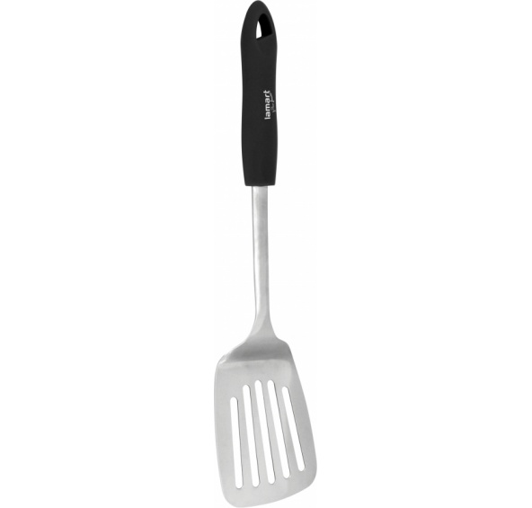 ObracečkaVyrobeno z prvotřídní nerezavějící oceli 18/8Ergonomická měkčená plastová rukojeťBarva rukojeti: černáLze mýt v myčce na nádobíSnadná manipulace, údržba a čištění3 roky zárukaRozměry: 32×8×3cm