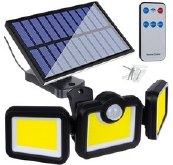 SPECIFIKACE -solární deska: 5,5V 1,8W; doba nabíjení: 6 hodin na slunci; doba svícení 8 hodin; Úhel detekce PIR: 120 °; detekční vzdálenost: 3-5 metrů; světelný výkon: 6000 lm; voděodolnost:IP67;pracovní rozsah od -40 stupňů C do +50 stupňů C; vestavěný, přesný PIR pohybový a soumrakový senzor; světelný zdroj: 171 COB LED; baterie: lithiová 2400mah (2x1200mah); životnost: 35000h LED; délka napájecího kabelu: 3m; rozměry: 28 x 9 x 10,5 cm; hmotnost: 477 g; hmotnost v balení: 584 g.