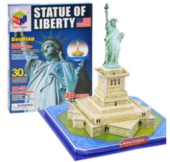 Prostorové 30dílné puzzle s motivem slavné americké sochy Svobody jistě potěší každého malého nadšence do 3D skládaček a modelování. Jednotlivé dílky skládačky jsou umístěny na speciálních listech. Jejich pokládka nevyžaduje žádné ostré předměty ani lepidlo.