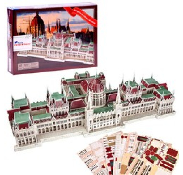 Prostorová skládačka s 237 dílky, která zobrazuje budovu maďarského parlamentu, jistě potěší každého malého nadšence do 3D skládaček a modelování.Budova maďarského parlamentu je jedním ze symbolů maďarského hlavního města i celé země. Nachází se na Dunaji ve čtvrti Pešť a je jednou z největších budov národního parlamentu na světě.Skládačky nevyžadují žádné nářadí, snadno se sestavují a nakonec je stavba skvělým dekorativním prvkem. Dílky skládačky jsou umístěny na deskách ze speciálního kartonu.