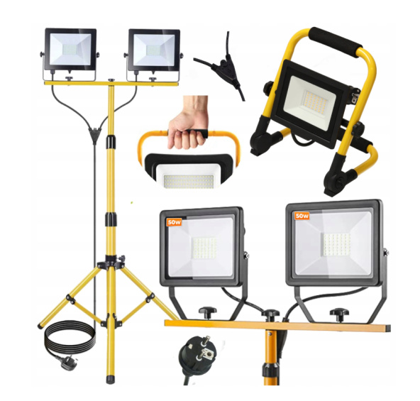 - Model: halogenový stojan + 50W LED reflektor