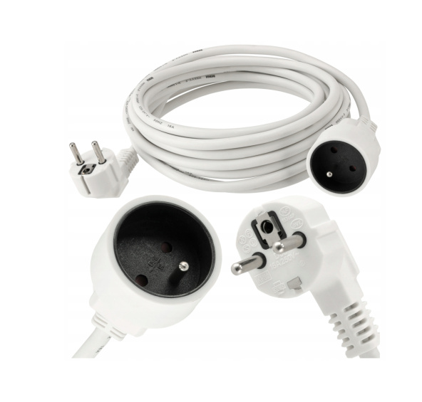 Popis produktu 5m síťový prodlužovací kabel s uzemněním, 1 zásuvka - konstrukce bílá, 2500W