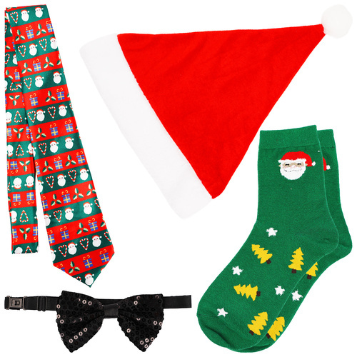 Uvnitř najdete 24 dárků uložených v ozdobných krabičkách například kravatu, vánoční ponožky, rukavice s dotykovou plochou, domino, pouzdro na karty, holicí strojek, držák na telefon a mnoho dalších praktických i zábavných překvapení.