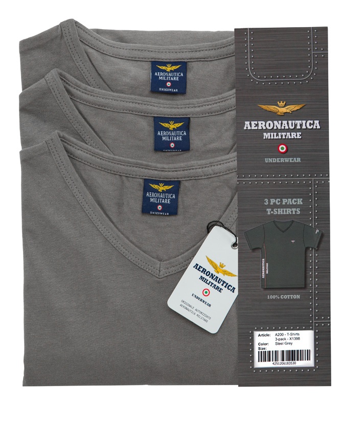 Specifikace trička Aeronautica Militare V-NECK 3-Pack X1398 Grey.
