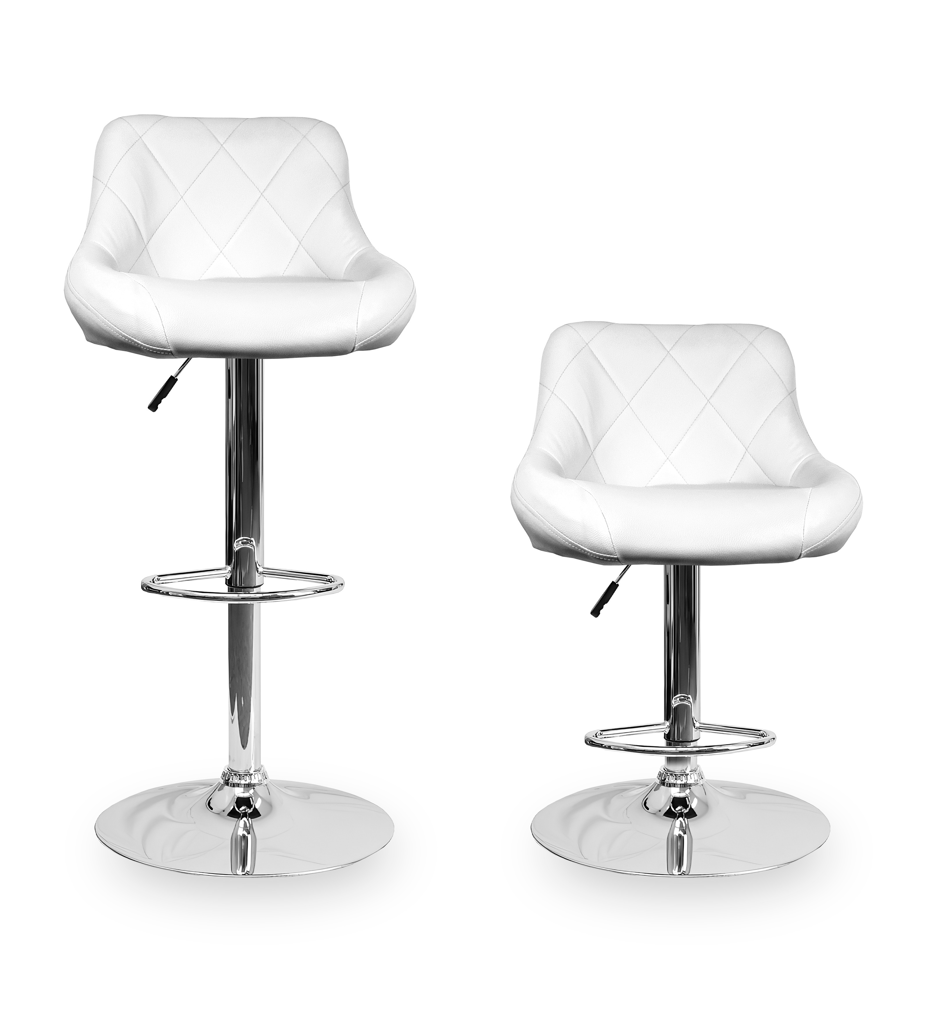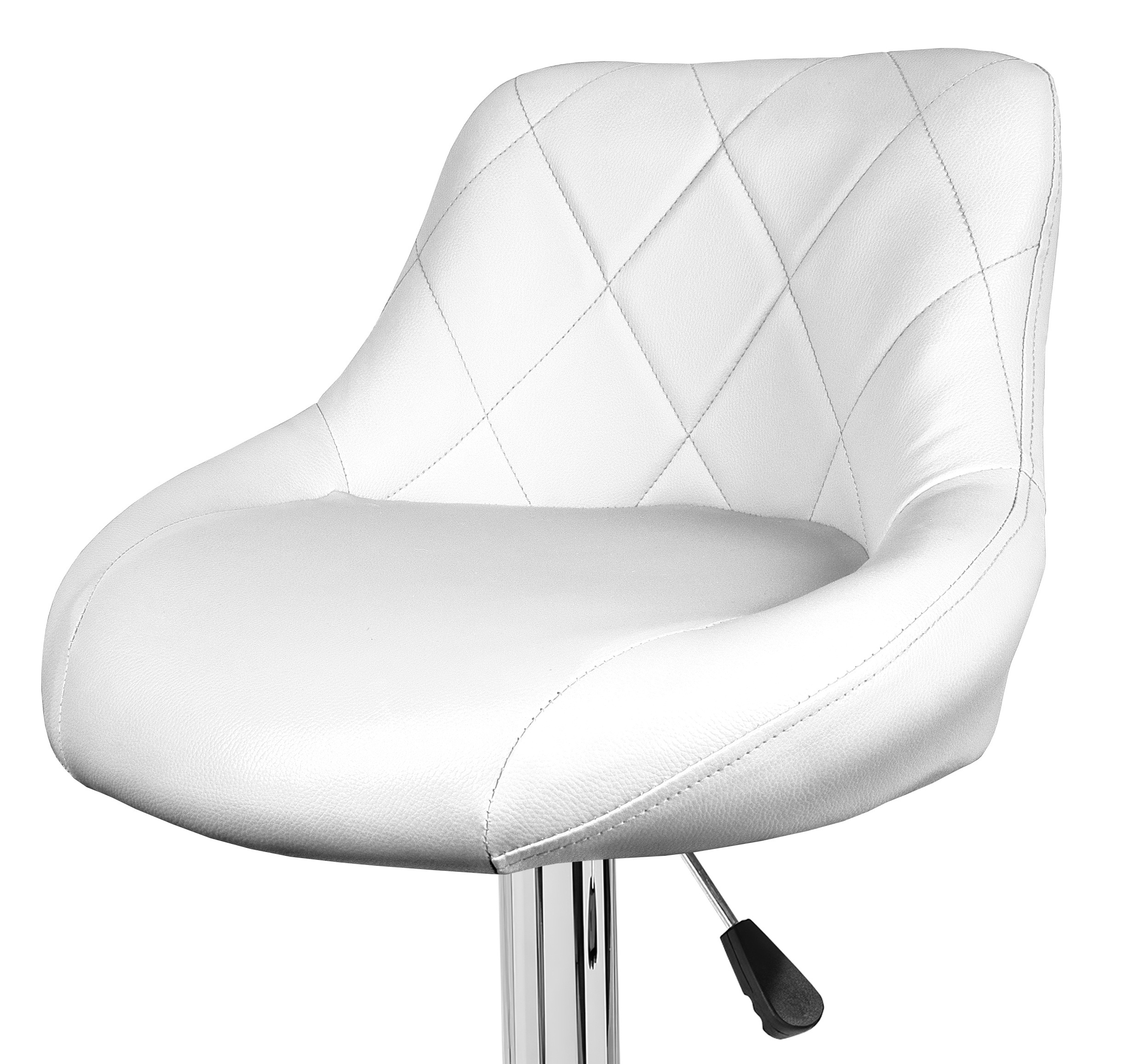 Židle má praktickou opěrku na nohy z pochromovaného kovu. Kruhová podnož a centrální noha jsou z chromu v lesku.