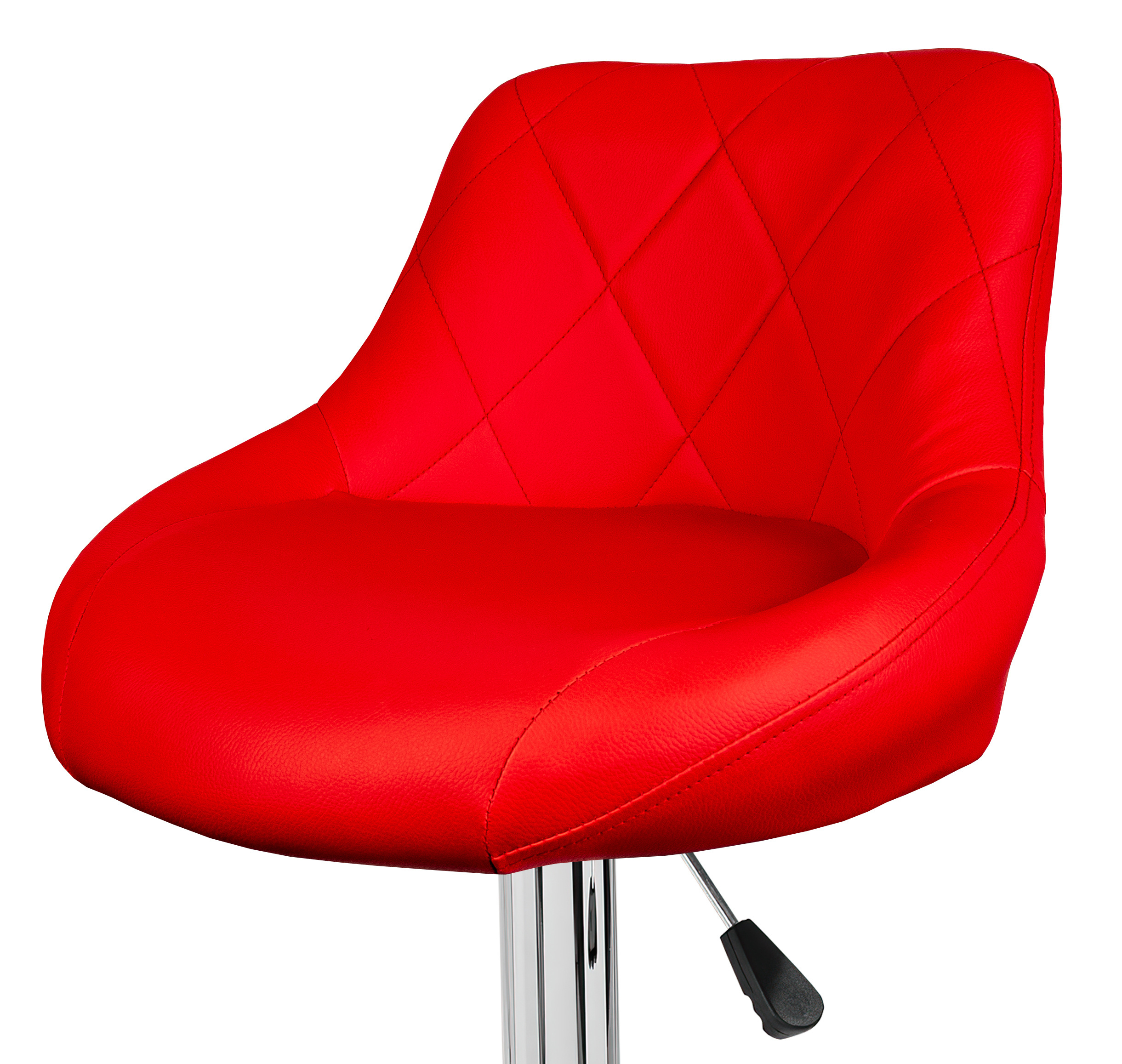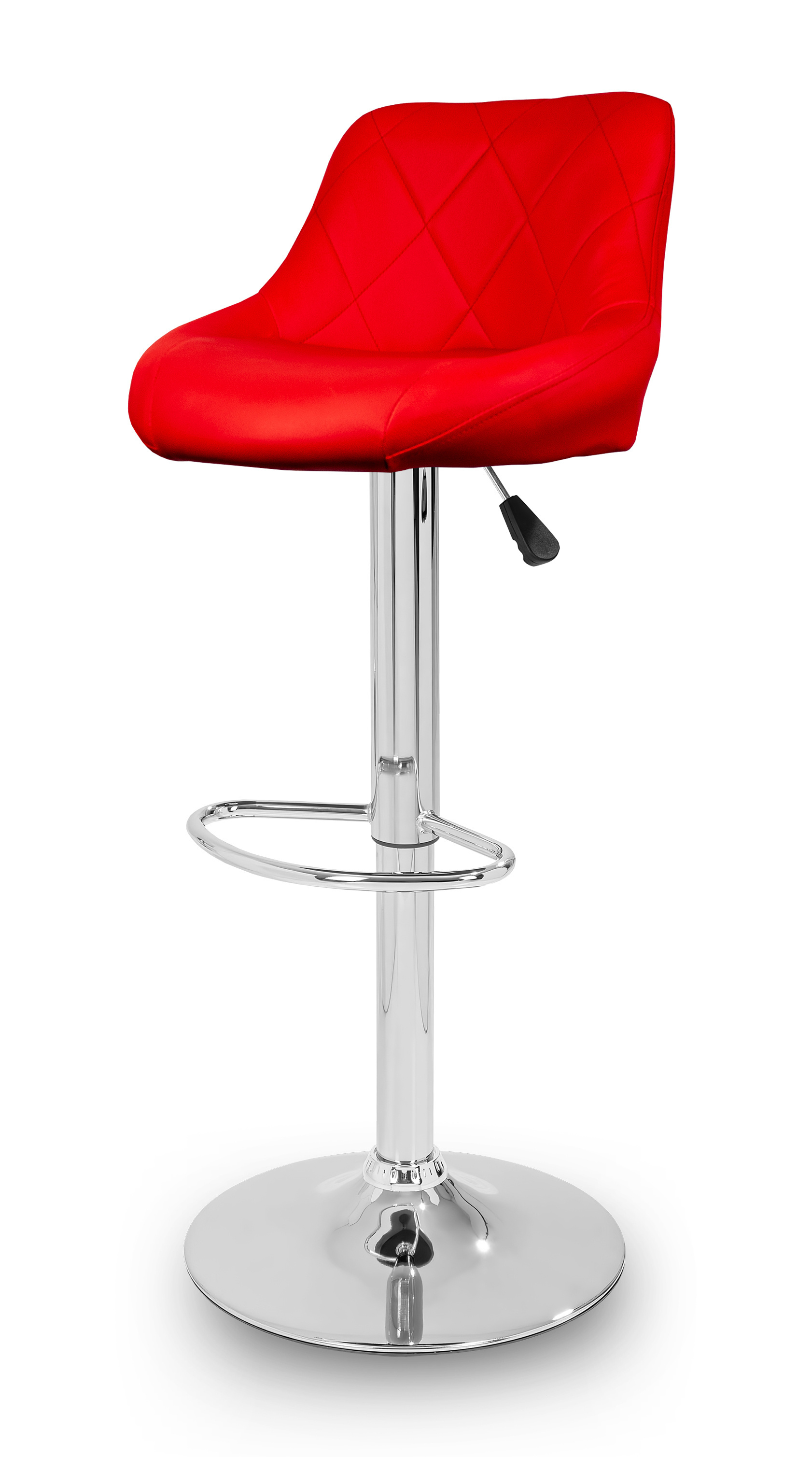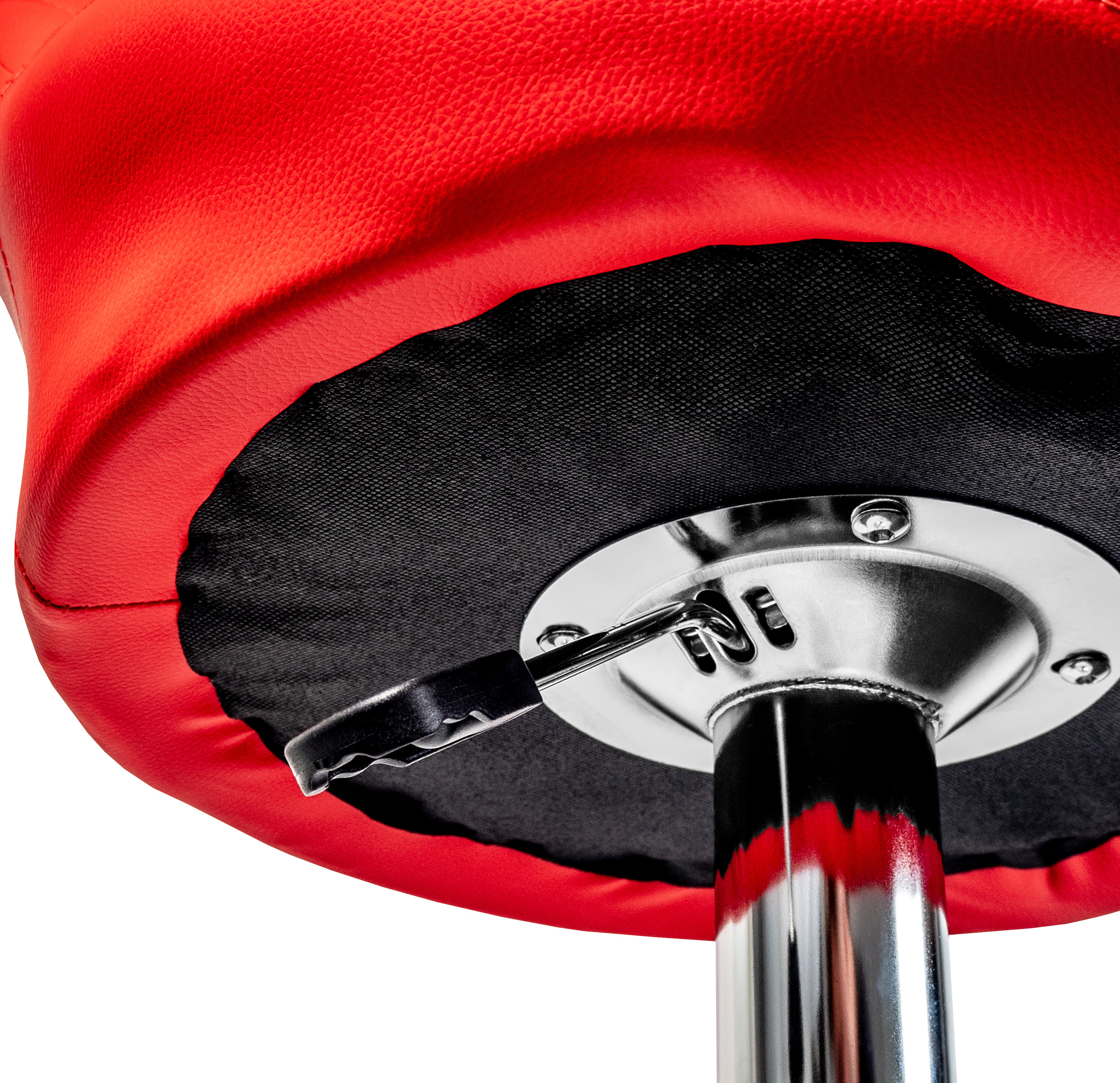 Židle má praktickou opěrku na nohy z pochromovaného kovu. Kruhová podnož a centrální noha jsou z chromu v lesku.