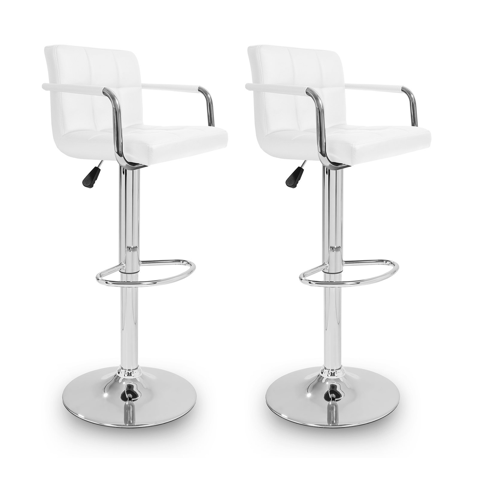 Židle má praktickou opěrku na nohy z pochromovaného kovu. Kruhová podnož a centrální noha jsou z chromu v lesku.