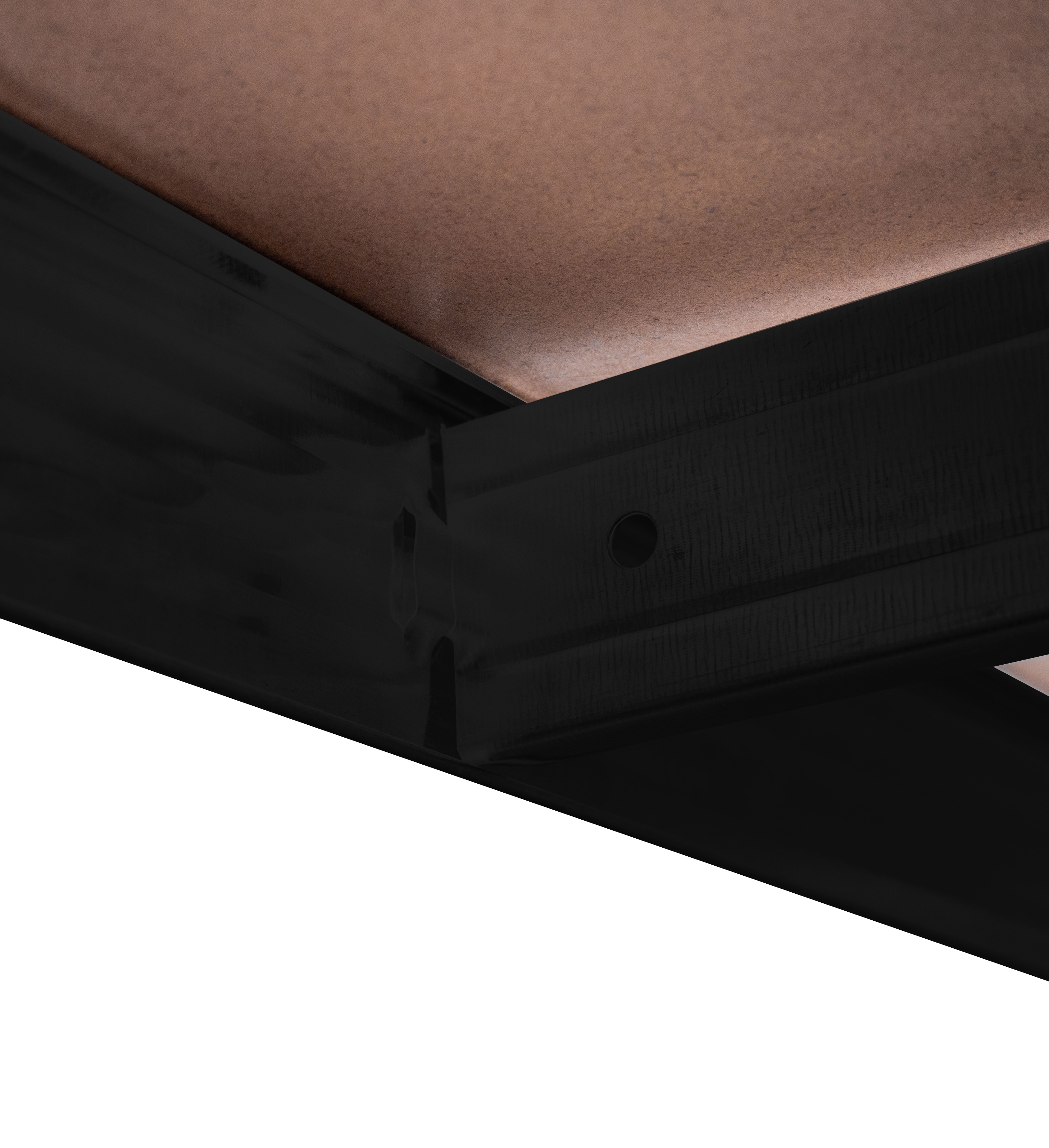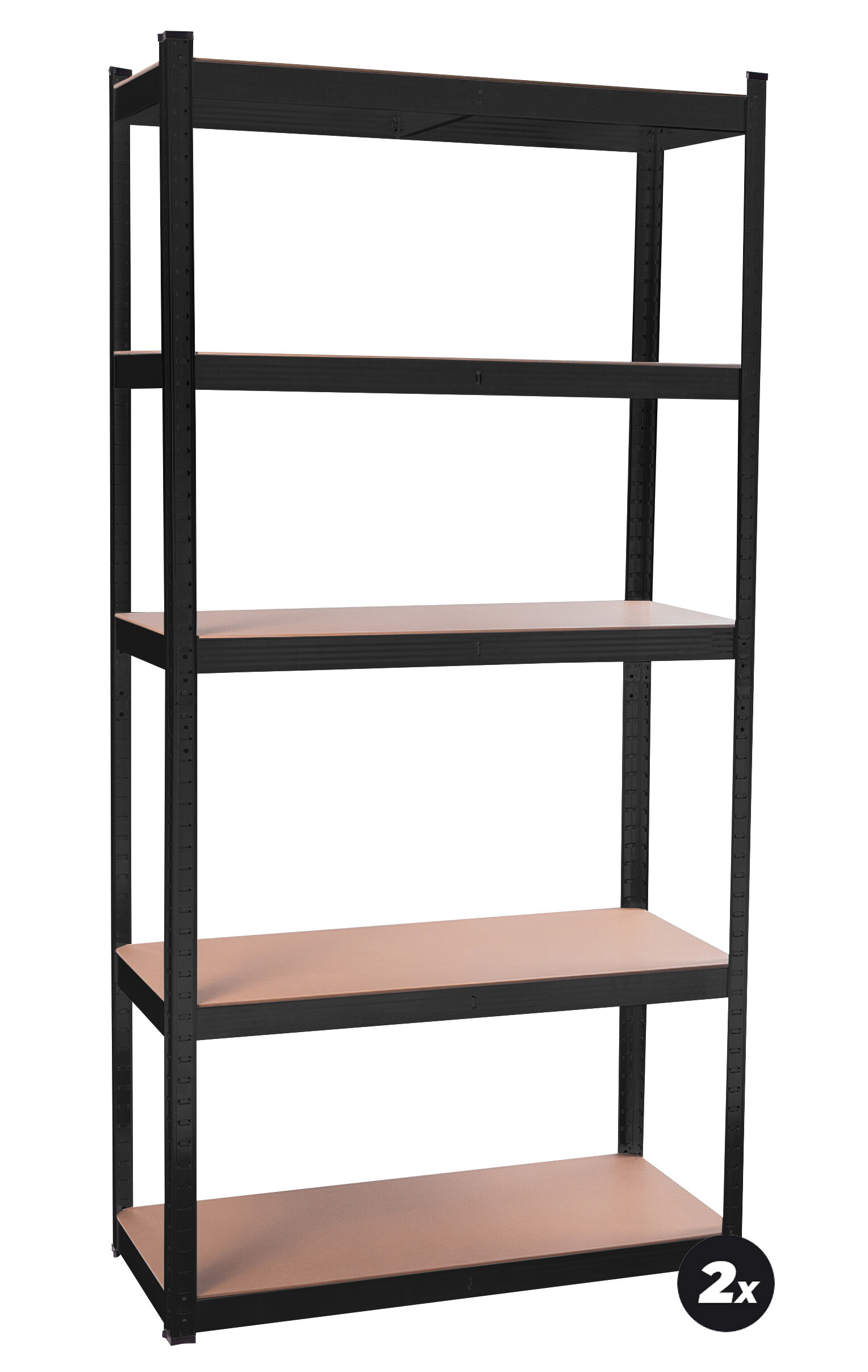 Na výšce cca 180 cm máte k dispozici 5 polic z mdf, které lze výškově vložit dle potřeby. Rám z galvanizované oceli v černé barvě zaručuje stabilitu a velkou nosnost cca 875 kg (na každou polici připadá cca 175 kg).