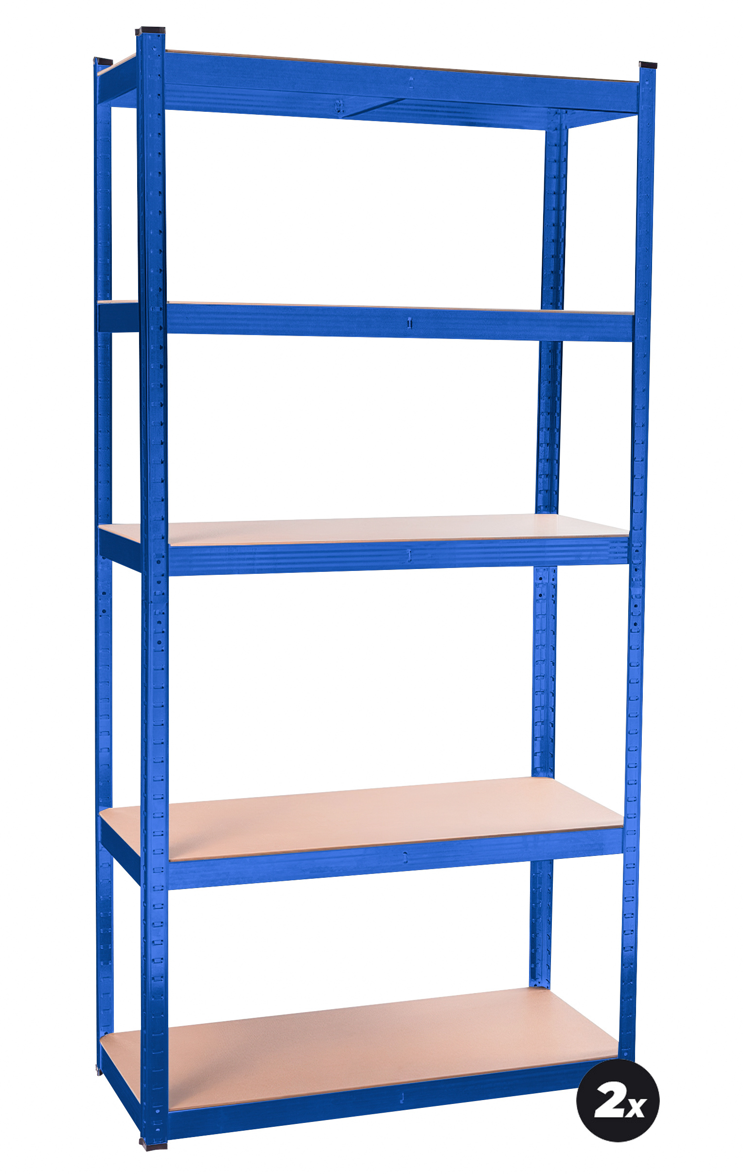 Na výšce cca 180 cm máte k dispozici 5 polic z mdf, které lze výškově vložit dle potřeby. Rám z galvanizované oceli v modré barvě zaručuje stabilitu a velkou nosnost cca 875 kg (na každou polici připadá cca 175 kg).