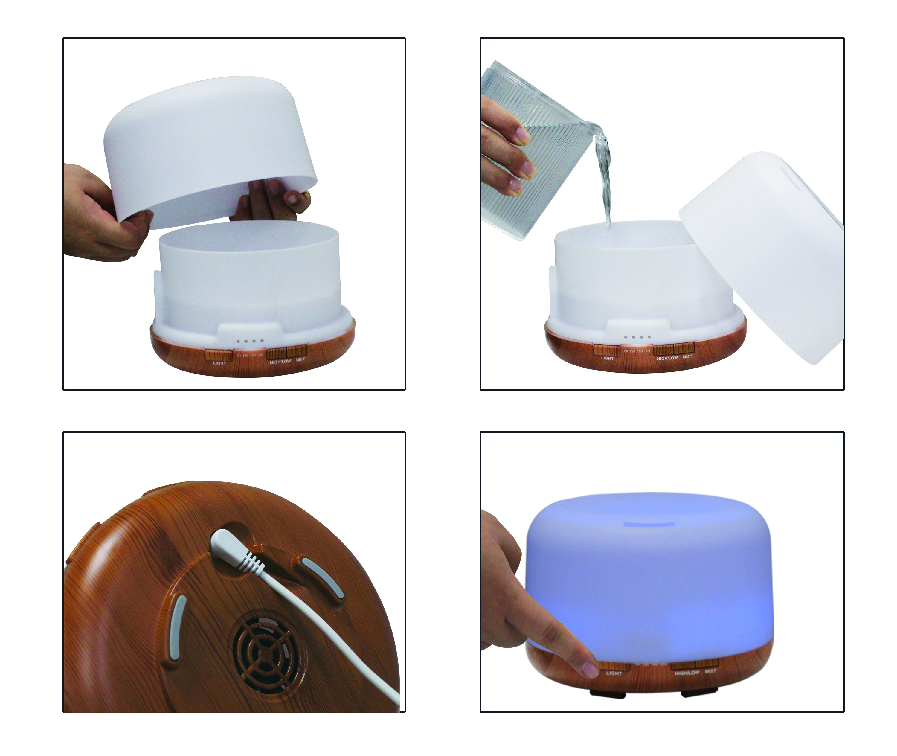 Nádržka je určena pro 500 ml vody, do které stačí přidat jen pár kapek éterického oleje, který však musí být 100% přírodní a plně rozpustitelný.