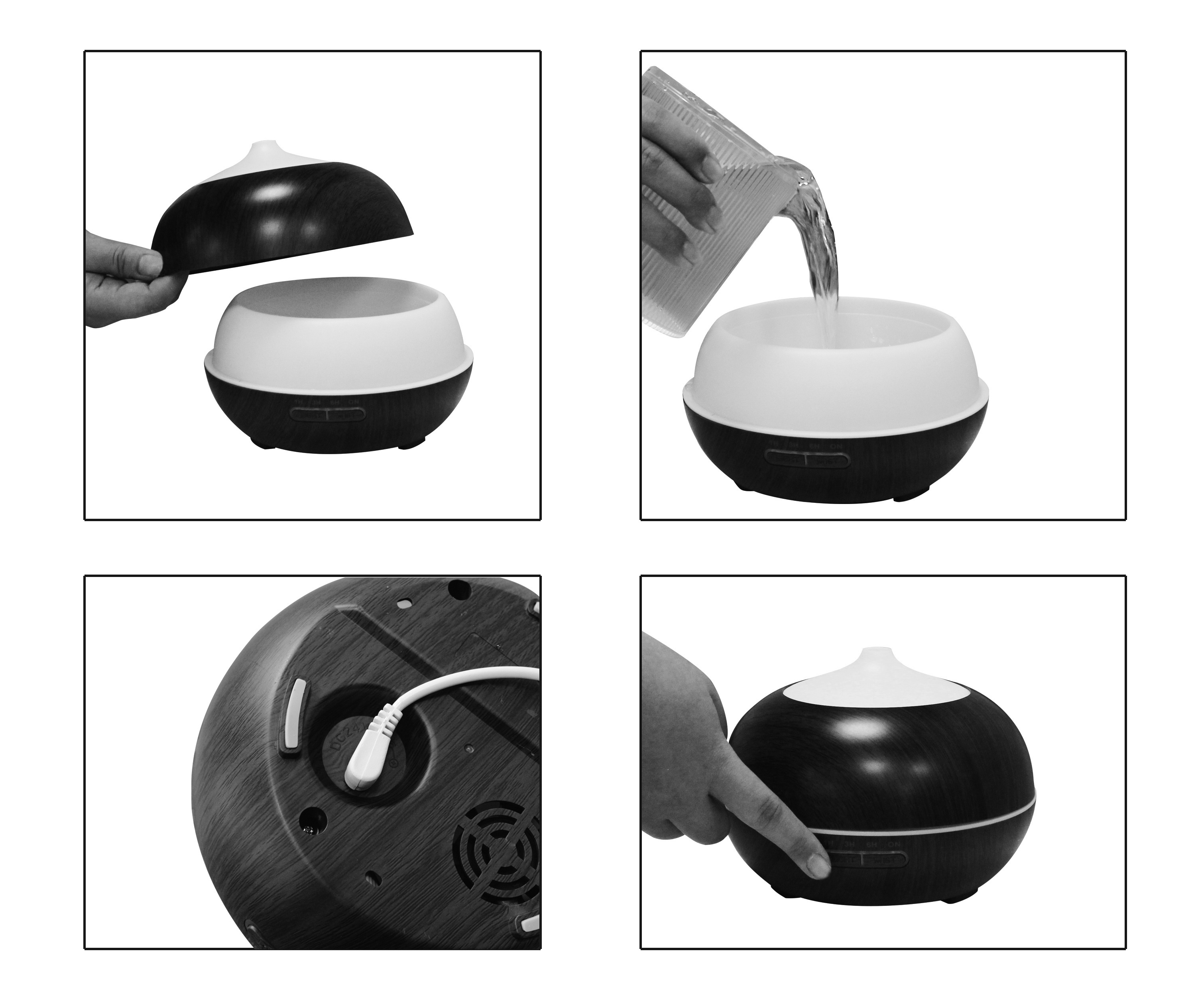 Nádržka je určena pro 400 ml vody, do které stačí přidat jen pár kapek éterického oleje, který však musí být 100% přírodní a plně rozpustitelný.