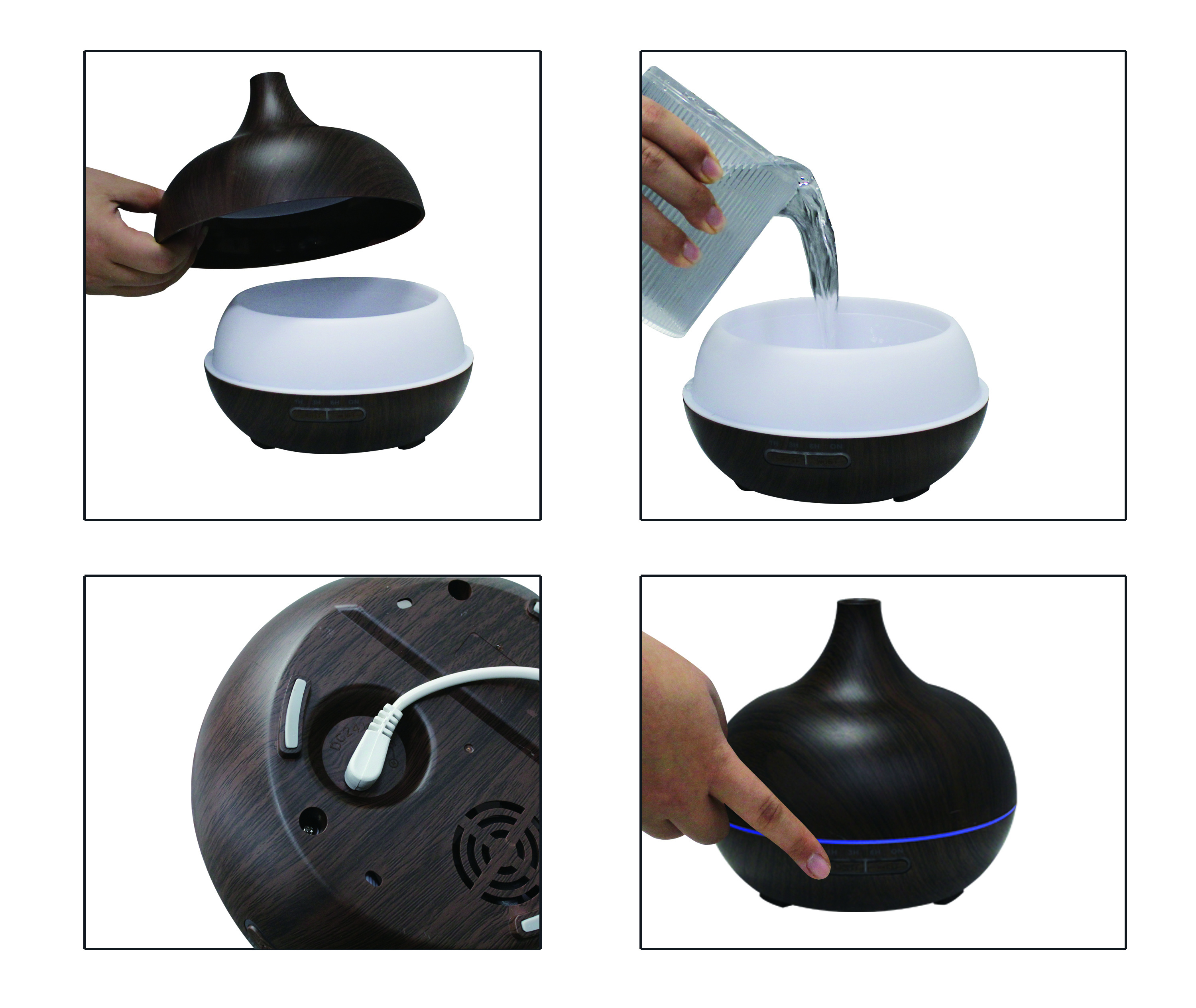 Nádržka je určena pro 400 ml vody, do které stačí přidat jen pár kapek éterického oleje, který však musí být 100% přírodní a plně rozpustitelný.
