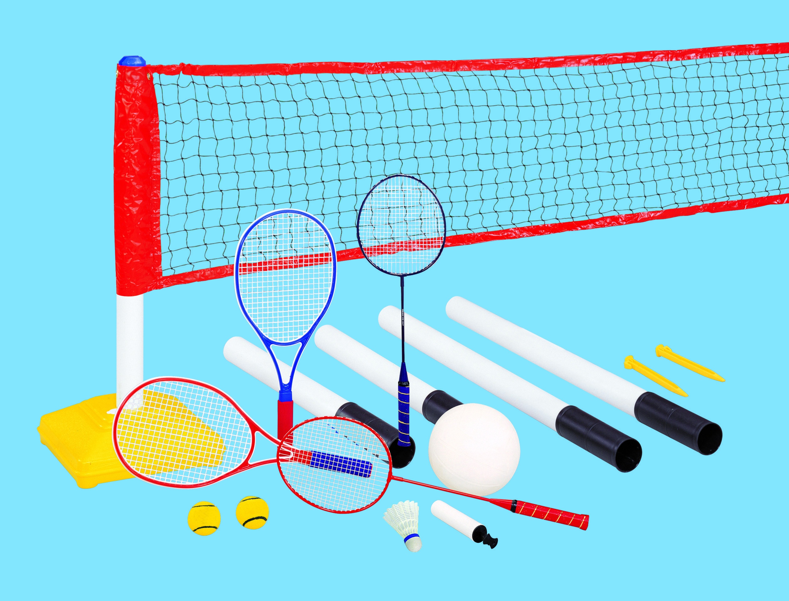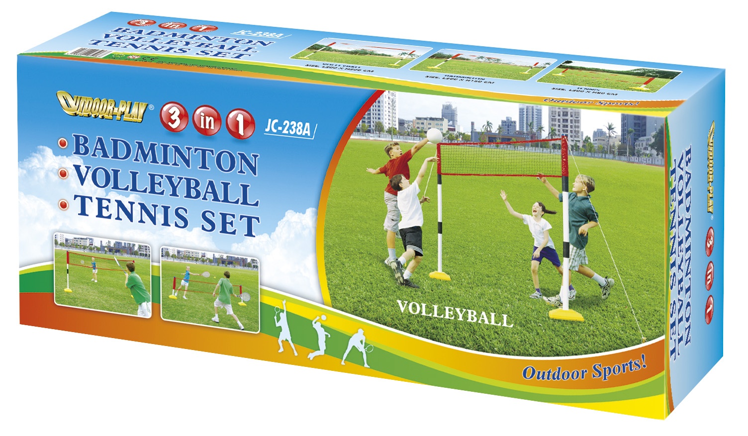 Síť je možné nastavit na dvě výšky, badmintonovou 300x150 cm, volejbalovou 300x200 cm a nebo tenisovou 300x80 cm.