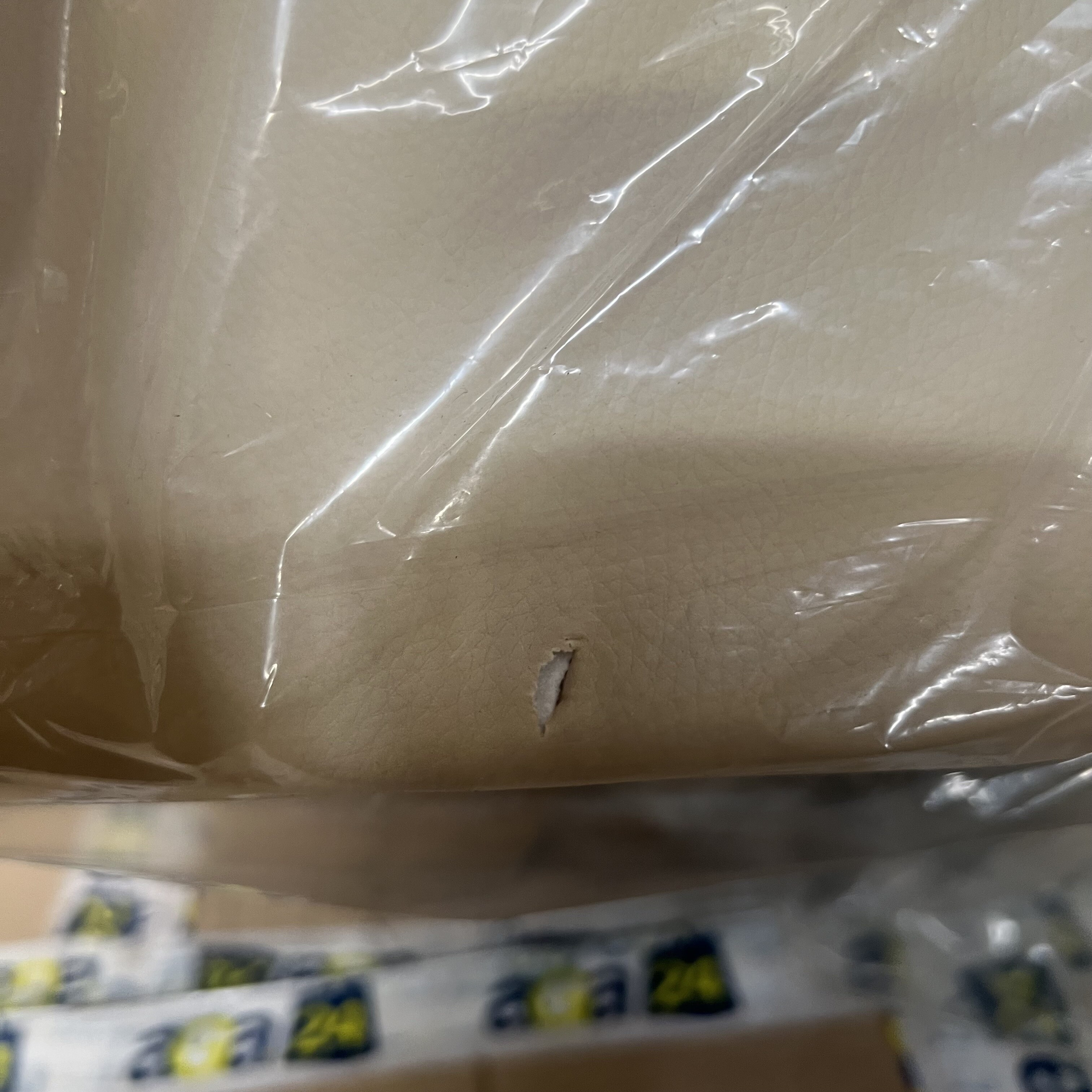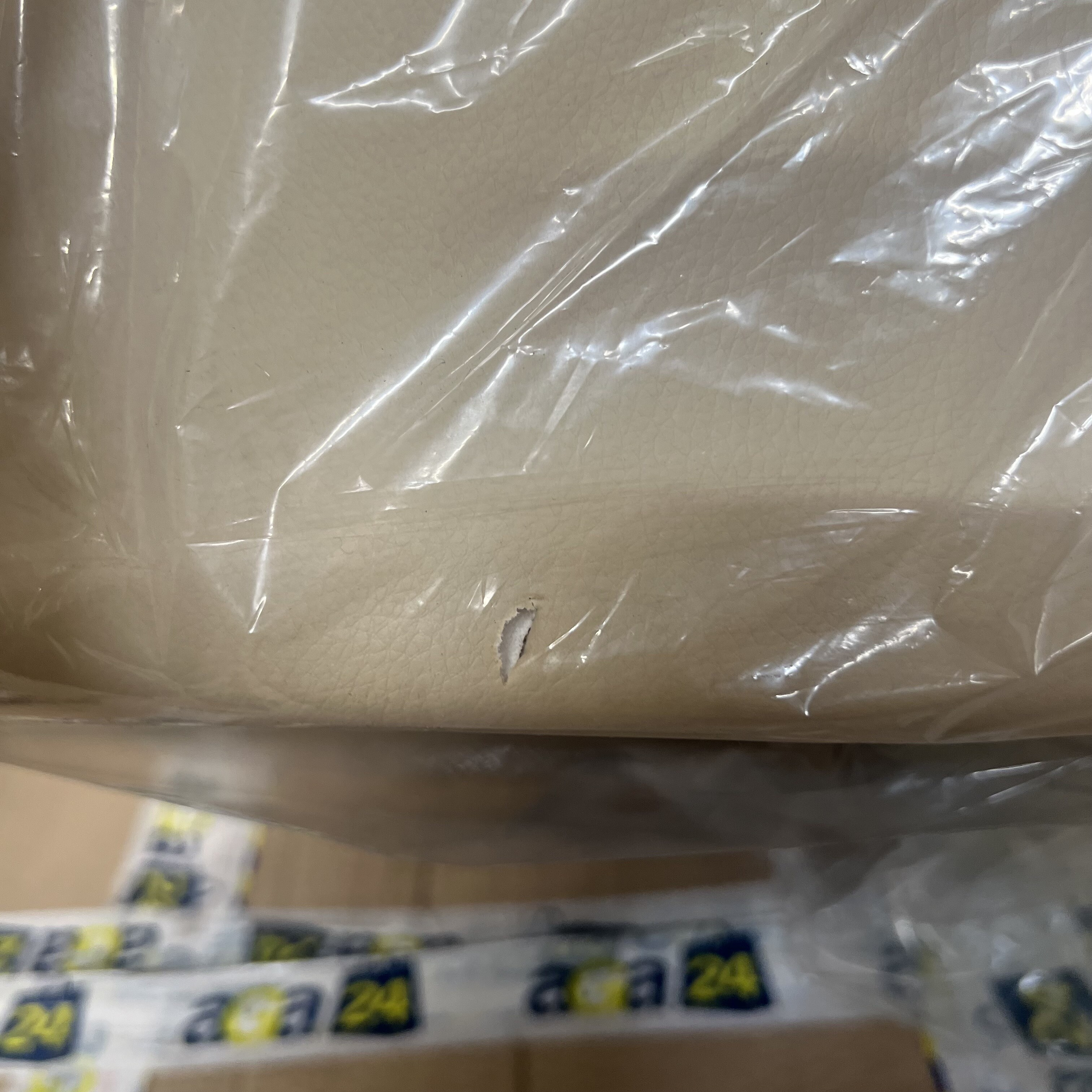 Barová židle má na zadní části sedáku malou díru způsobenou říznutím.