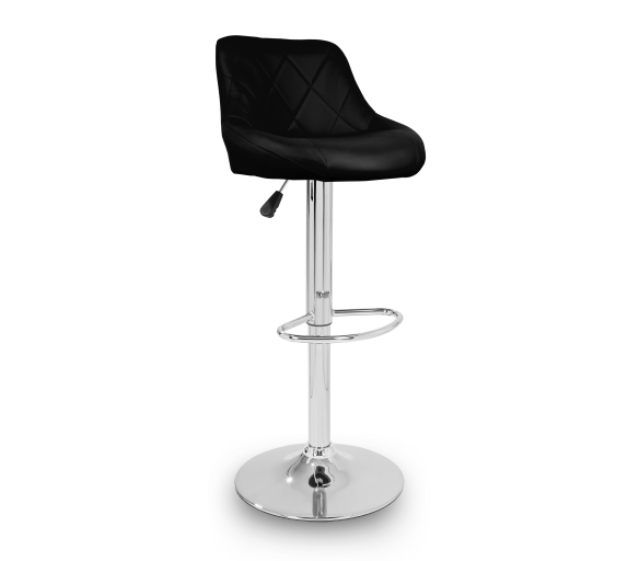 Židle má praktickou opěrku na nohy z pochromovaného kovu. Kruhová podnož a centrální noha jsou z chromu v lesku.