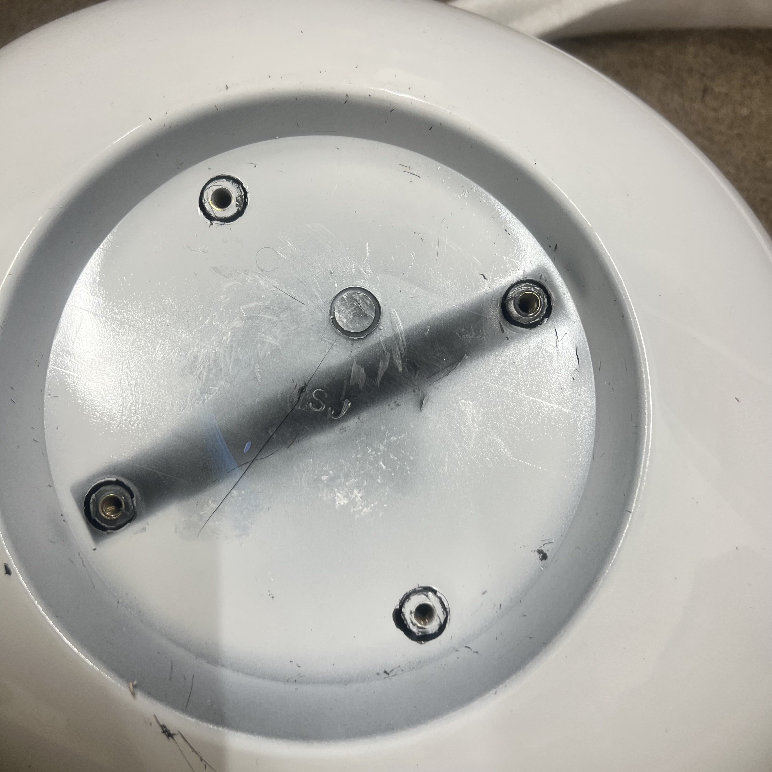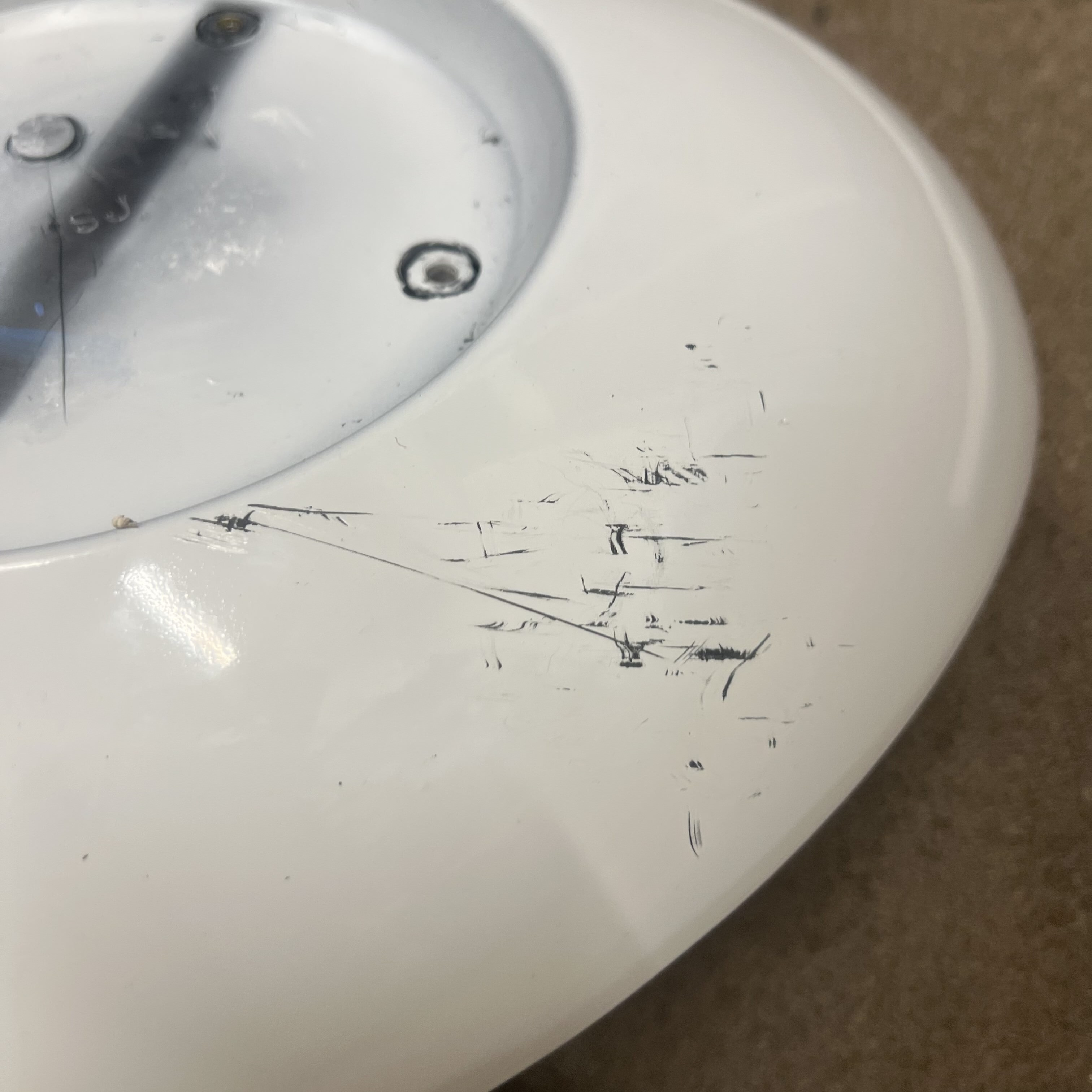 U barové židle je sedátko ze spodní části poškrábané v důsledku přepravy.