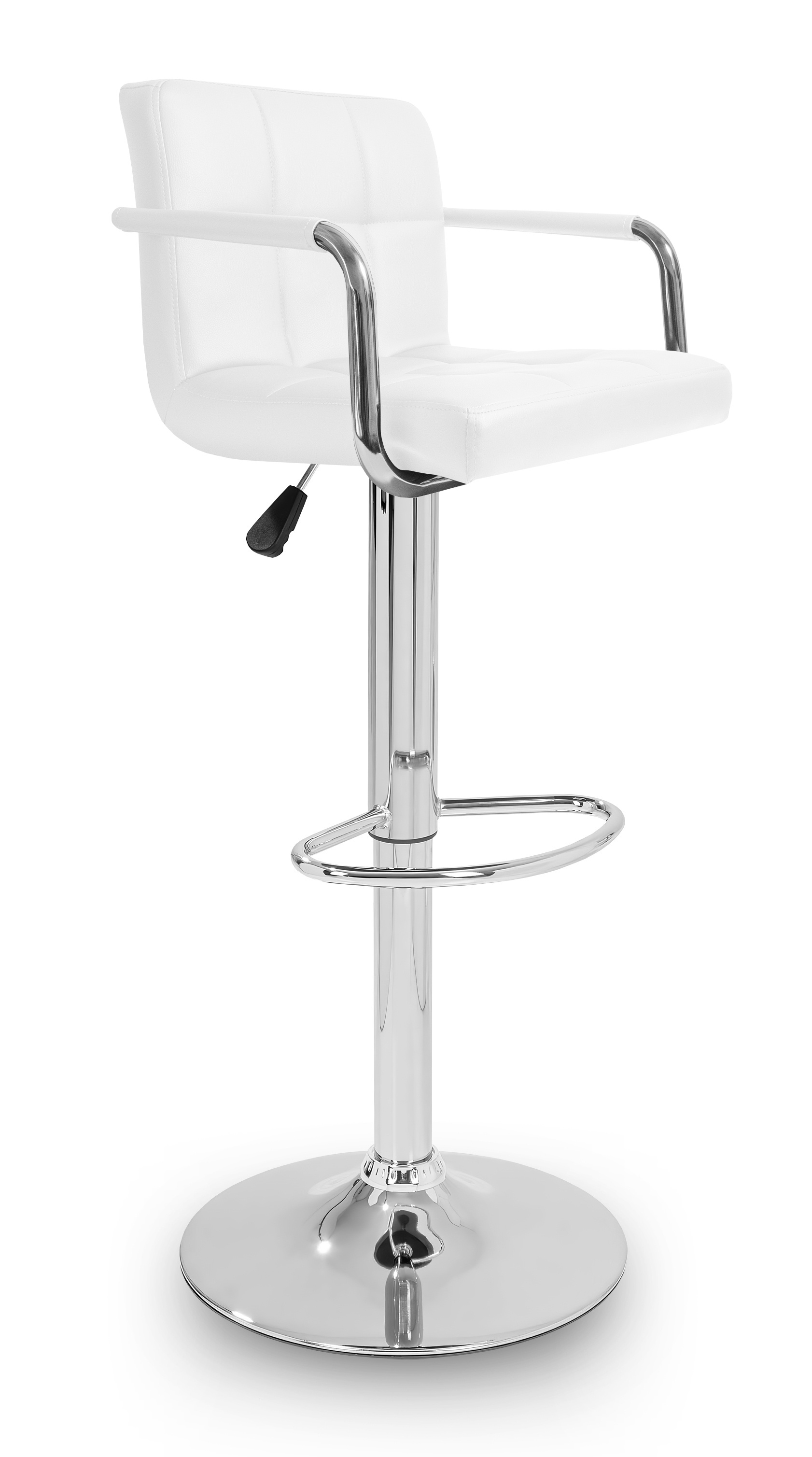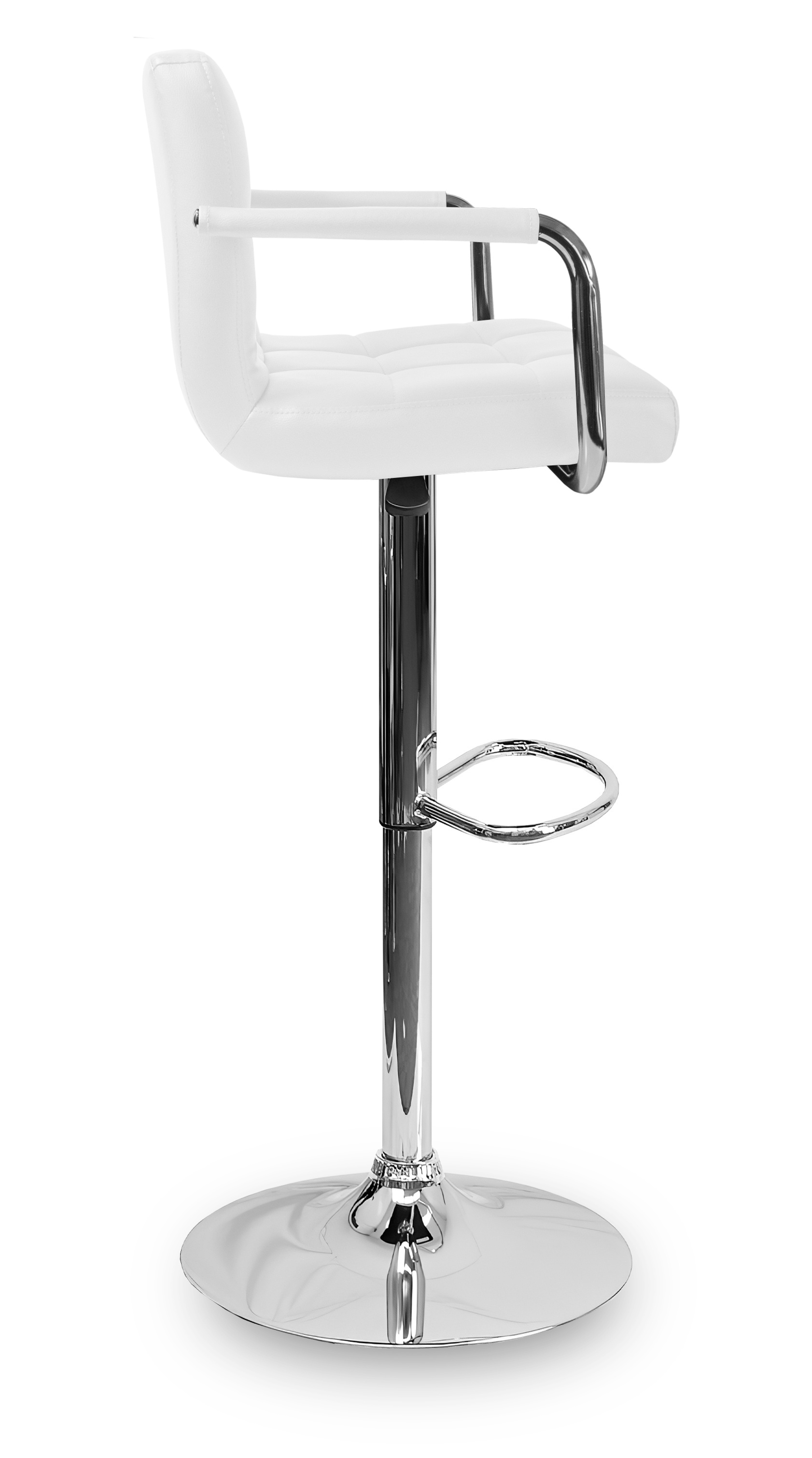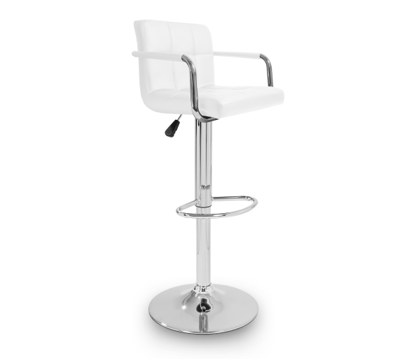 Židle má praktickou opěrku na nohy z pochromovaného kovu. Kruhová podnož a centrální noha jsou z chromu v lesku.