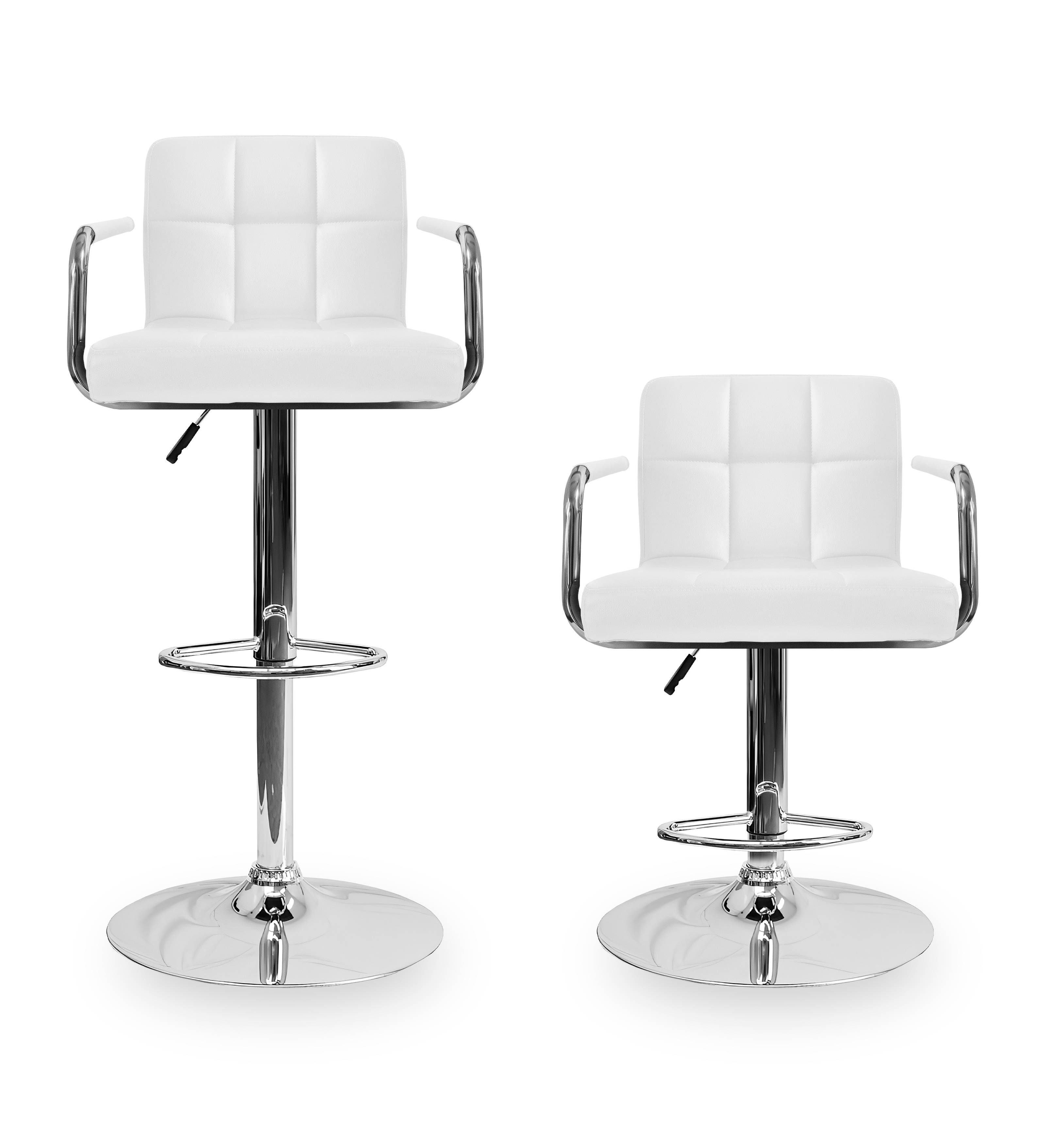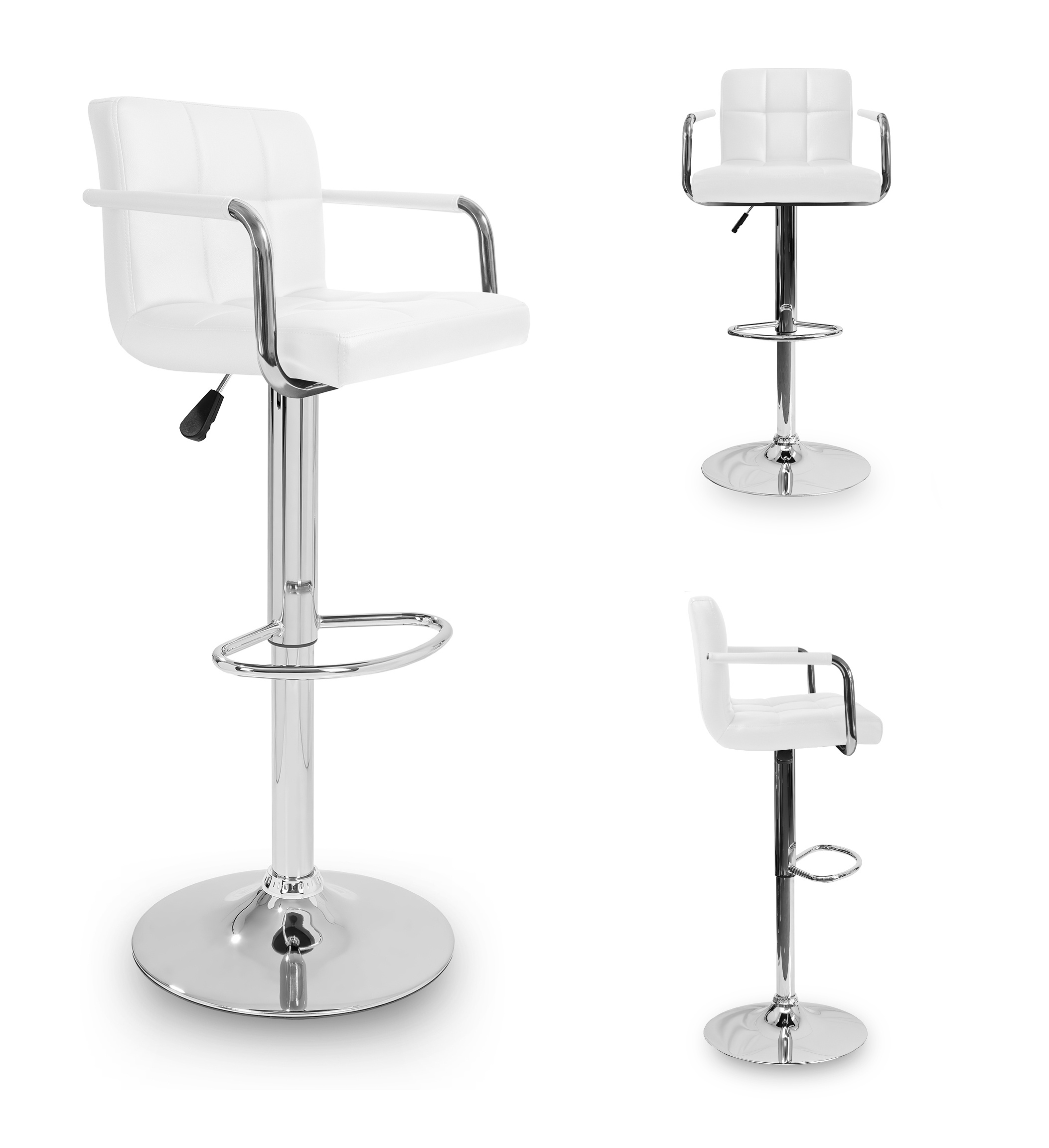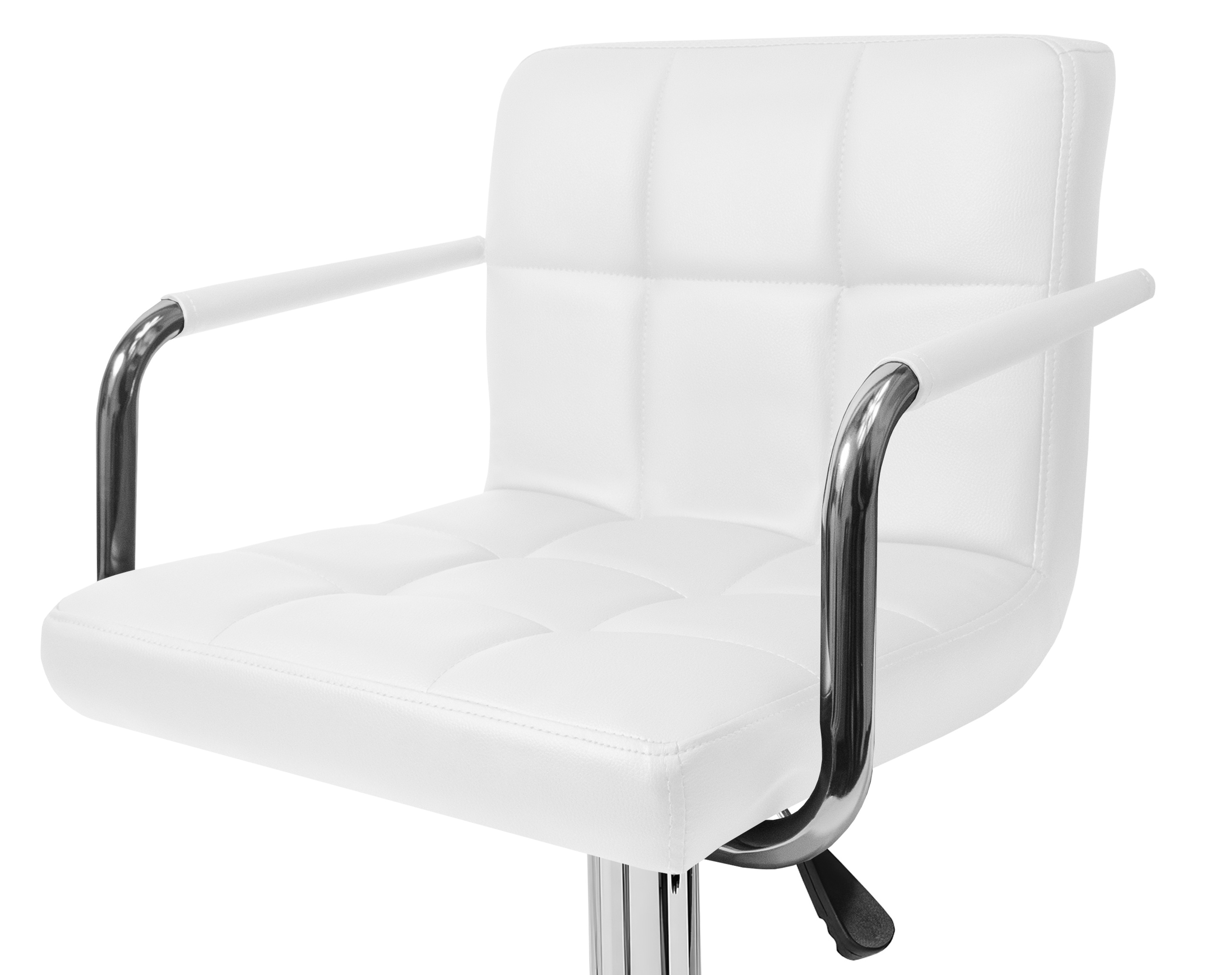 Židle má praktickou opěrku na nohy z pochromovaného kovu. Kruhová podnož a centrální noha jsou z chromu v lesku.