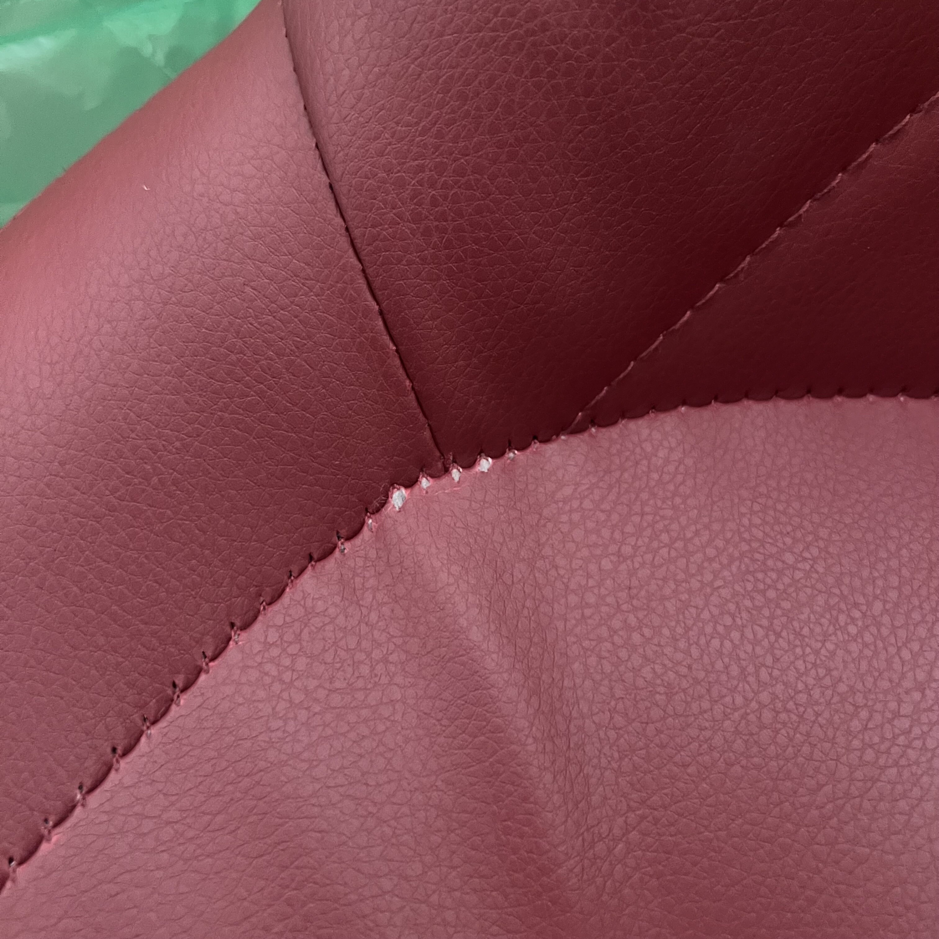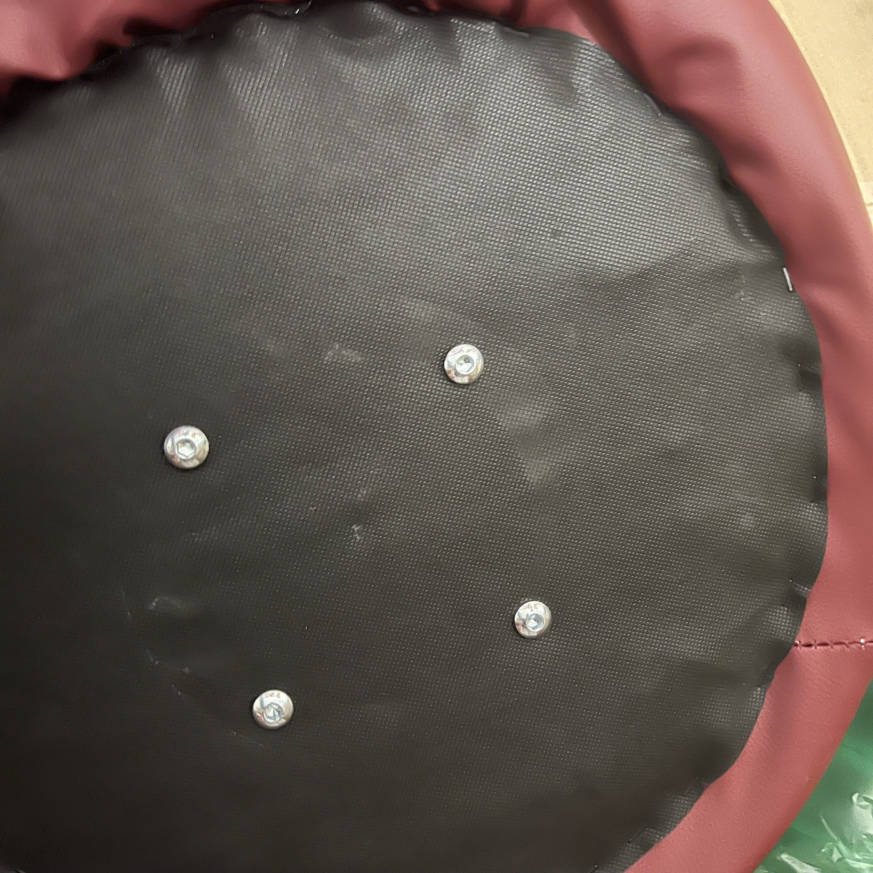 Taburet má ve švu dírky v materiálu.