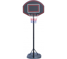 Na odrazové desce s klasickými bílými čarami je upevněn basketbalový koš s ocelovou obroučkou o průměru 43 cm lakovanou práškovým lakem a se síťkou odolnou proti povětrnostním vlivům.