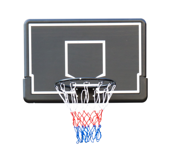 Deska koše je vyrobená sendvičovou technologií z pevného plastu tloušťky 2,6 mm a zpevňujícími kovovými tyčemi tvaru V pro bezpečné a pevné upevnění na zdi.