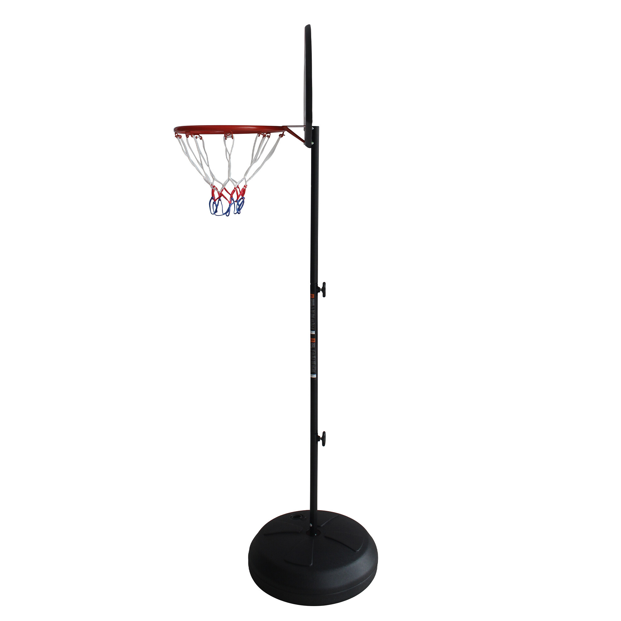 Sada má stabilní základnu, kterou lze zatížit vodou nebo pískem, a ocelový stojan s nastavitelnou výškou.