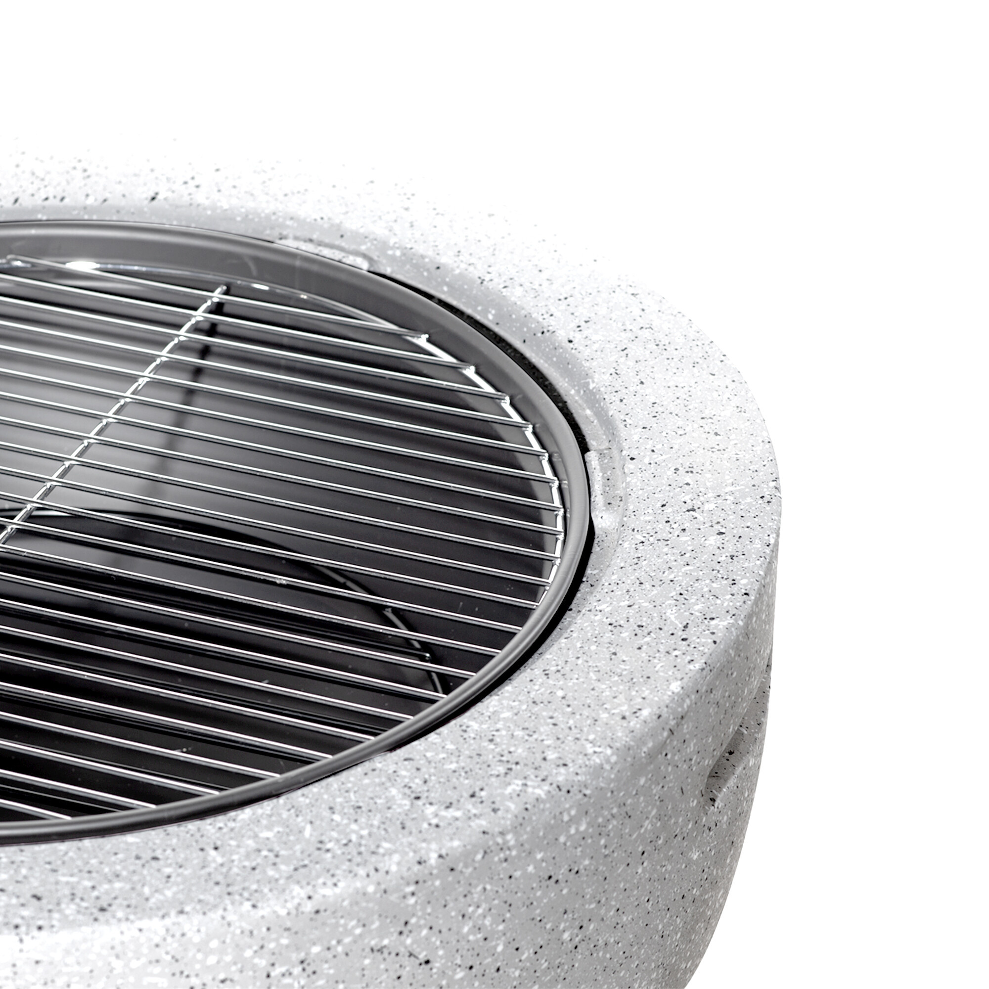 Grilování je umožněno díky ocelovému roštu s průměrem 34,5 cm. Ohniště dotváří speciálně tvarovaný poklop, díky kterému jste chráněni před jiskrami a zvyšuje tak vaši bezpečnost i pohodlí.