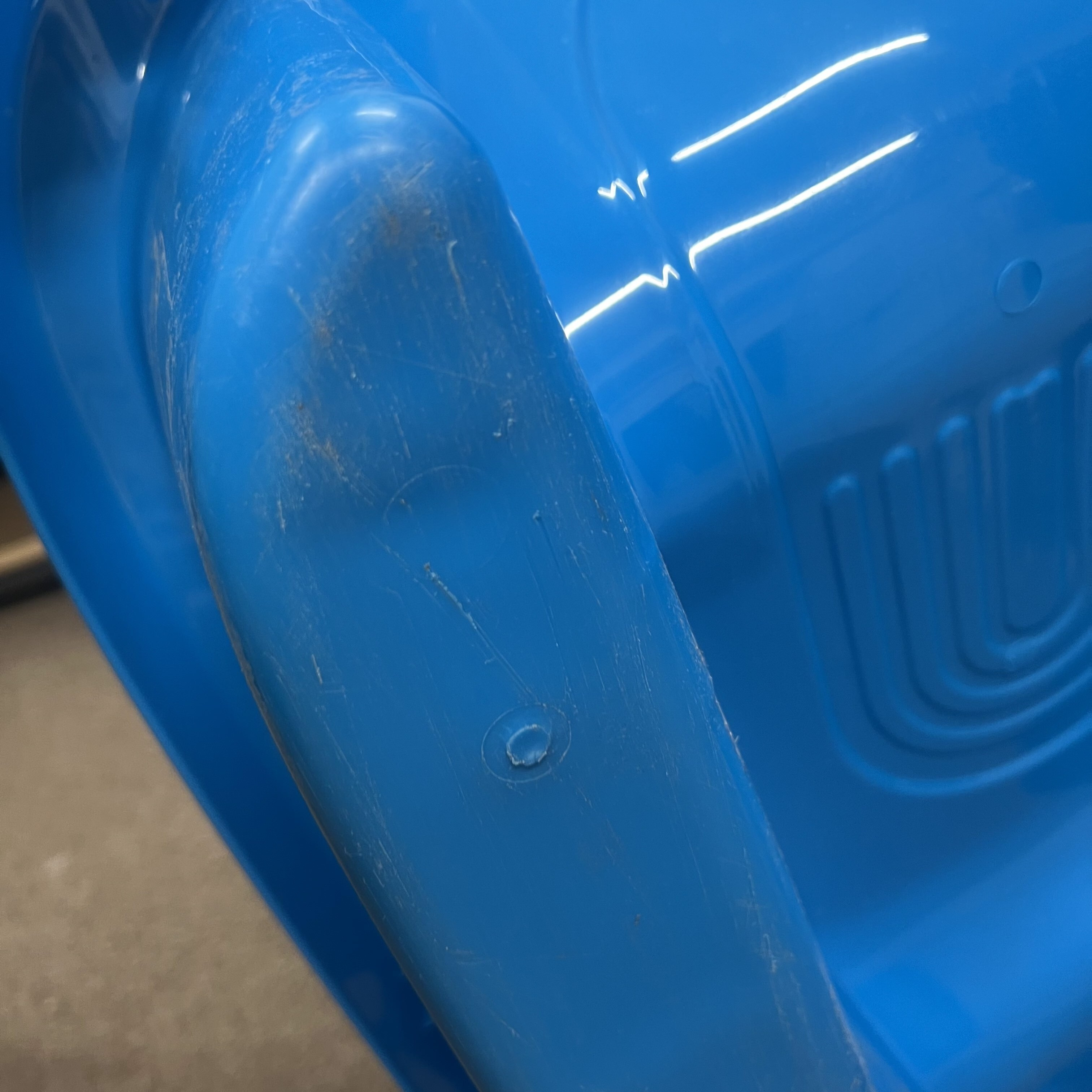 Sáně byly použity k natáčení reklamy, na spodní straně jsou viditelné stopy užívání.