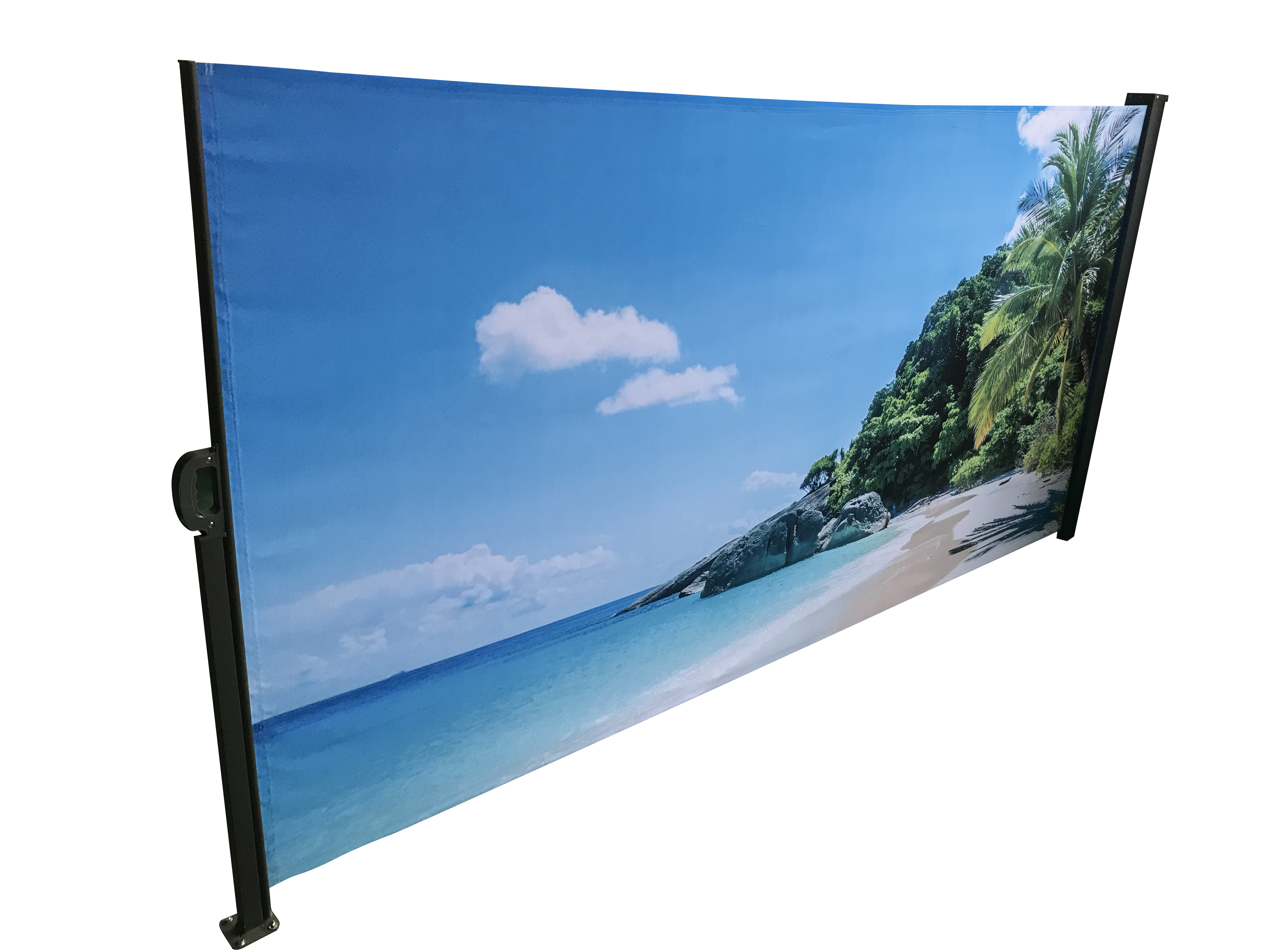 Boční markýza vás venku chrání před větrem, sluncem nebo i před nechtěnými pohledy kolemjdoucích sousedů.