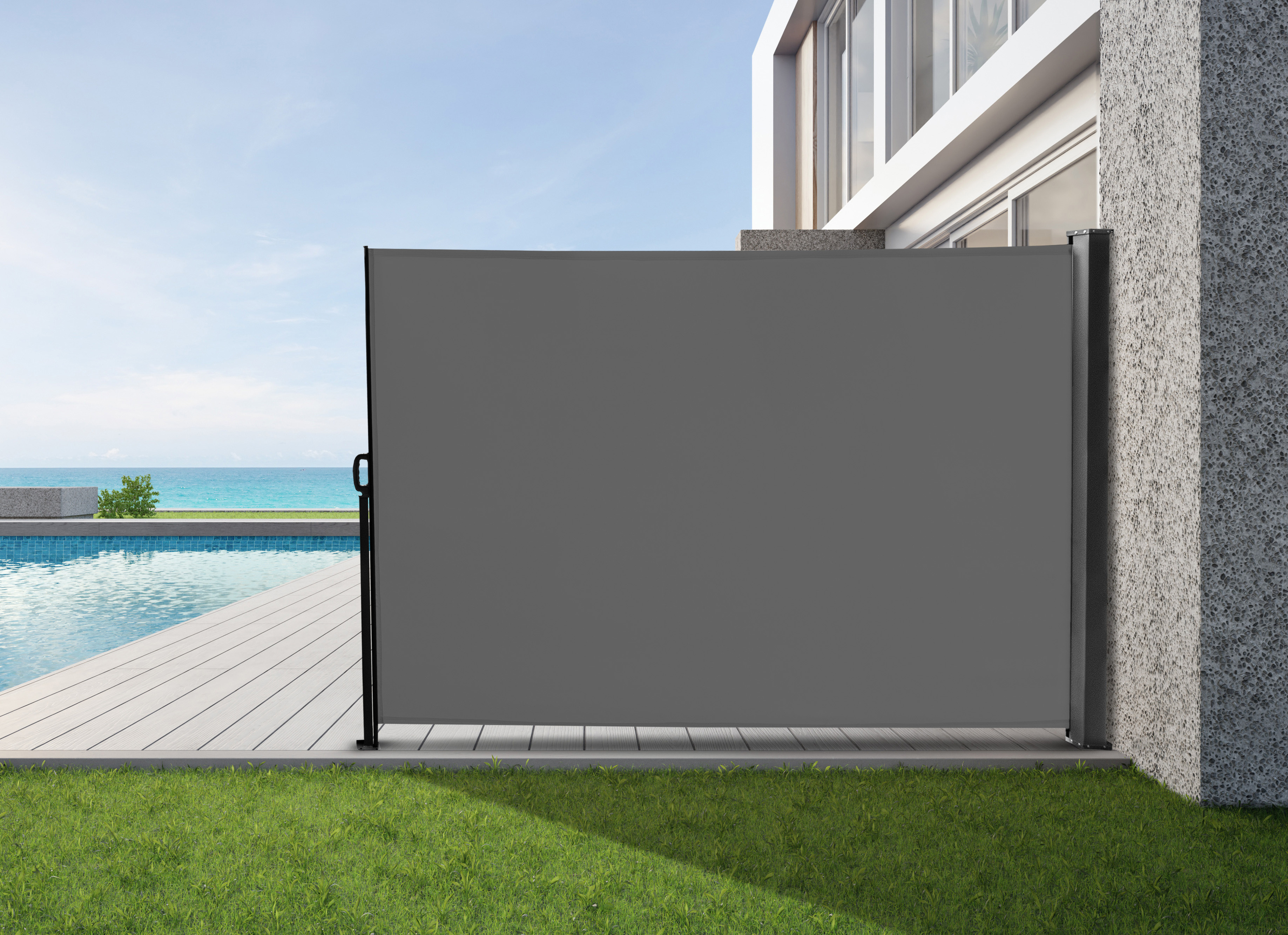 Boční markýza vás venku chrání před větrem, sluncem nebo i před nechtěnými pohledy kolemjdoucích sousedů.