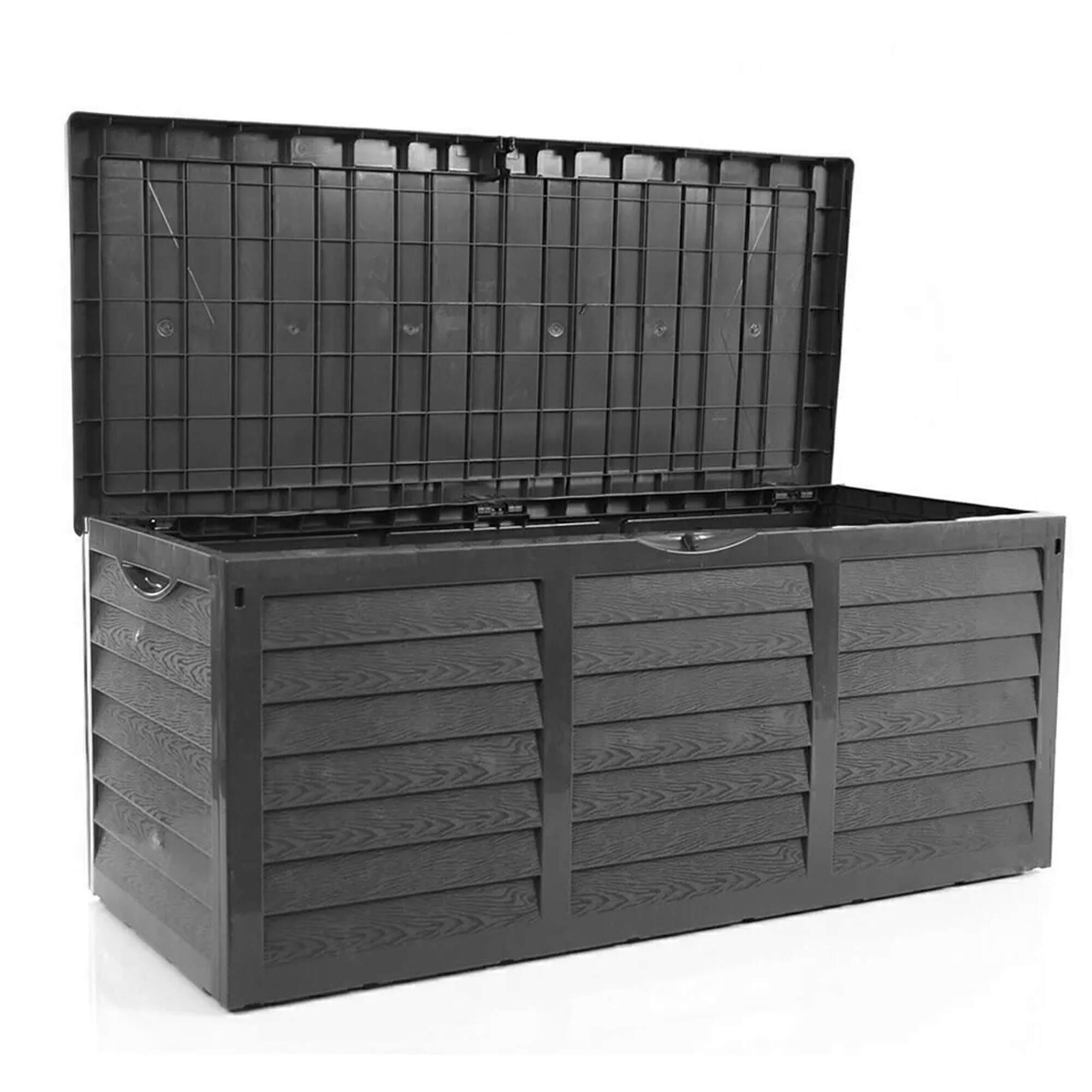 S kapacitou 320 litrů nabízí zahradní box dostatek prostoru pro uložení všech vašich potřebných věcí. Jeho rozměry (výška: 51 cm, šířka: 117 cm, hloubka: 54 cm) zajišťují, že se vejde na většinu teras, zahrad a garáží. Pohodlná madla po stranách usnadňují přenášení boxu, zatímco odolná kolečka umožňují snadnou přepravu i s obsahem.
