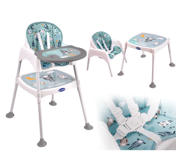Křeslo má až tři různé funkce! lze ji použít jako židličku na krmení pro děti od 6 do 36 měsíců, a když batole příliš vyroste, můžete výrobek přeměnit na židličku a stolek. tato kombinace vám umožní nejen pohodlné stolování, ale také skvělé místo pro kreslení a hraní! V této podobě bude bezproblémově sloužit až do šesti let!