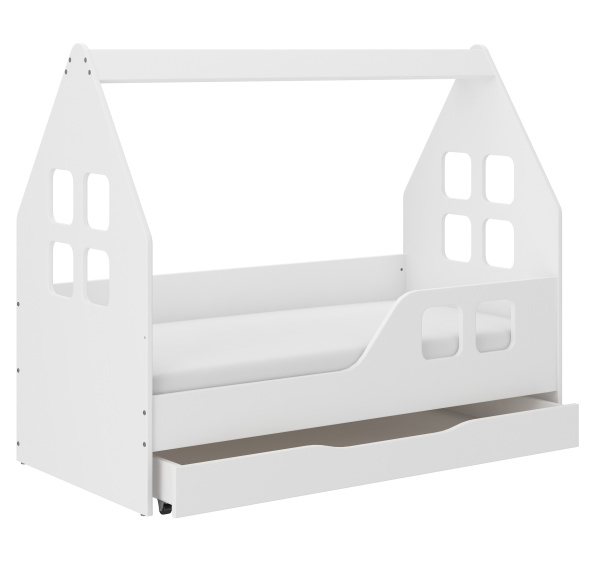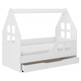 Postel ve tvaru domečku je vyrobena z kvalitní nábytkářské MDF desky, která zajišťuje pevnost a stabilitu celé postele.