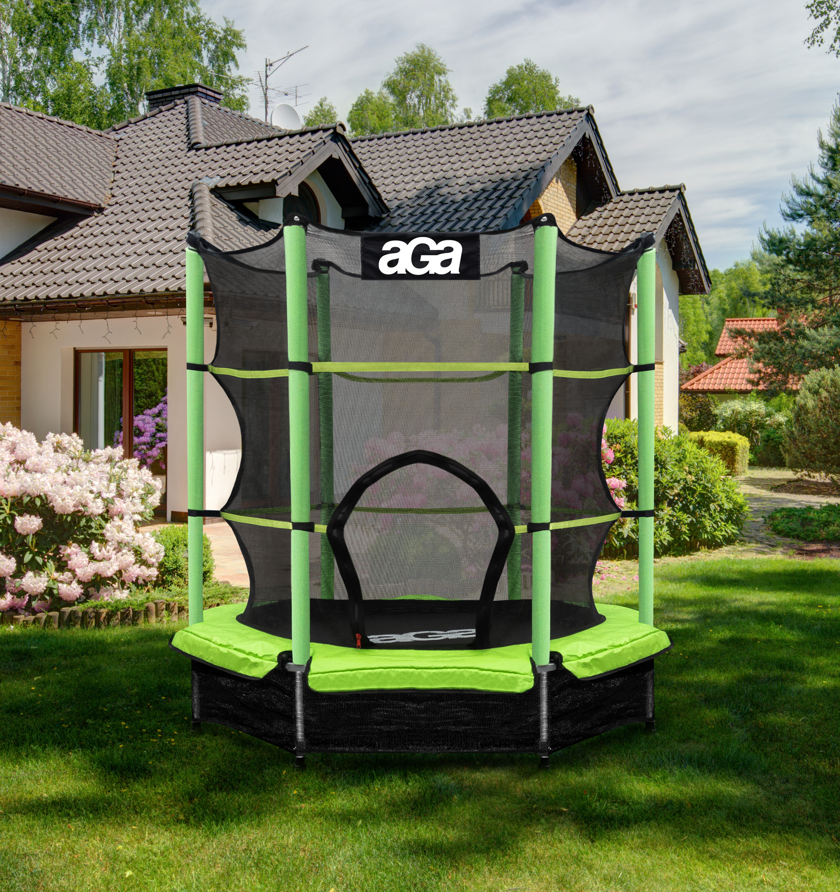 Aga Dětská trampolína 140 cm Světle zelená + ochranná síť