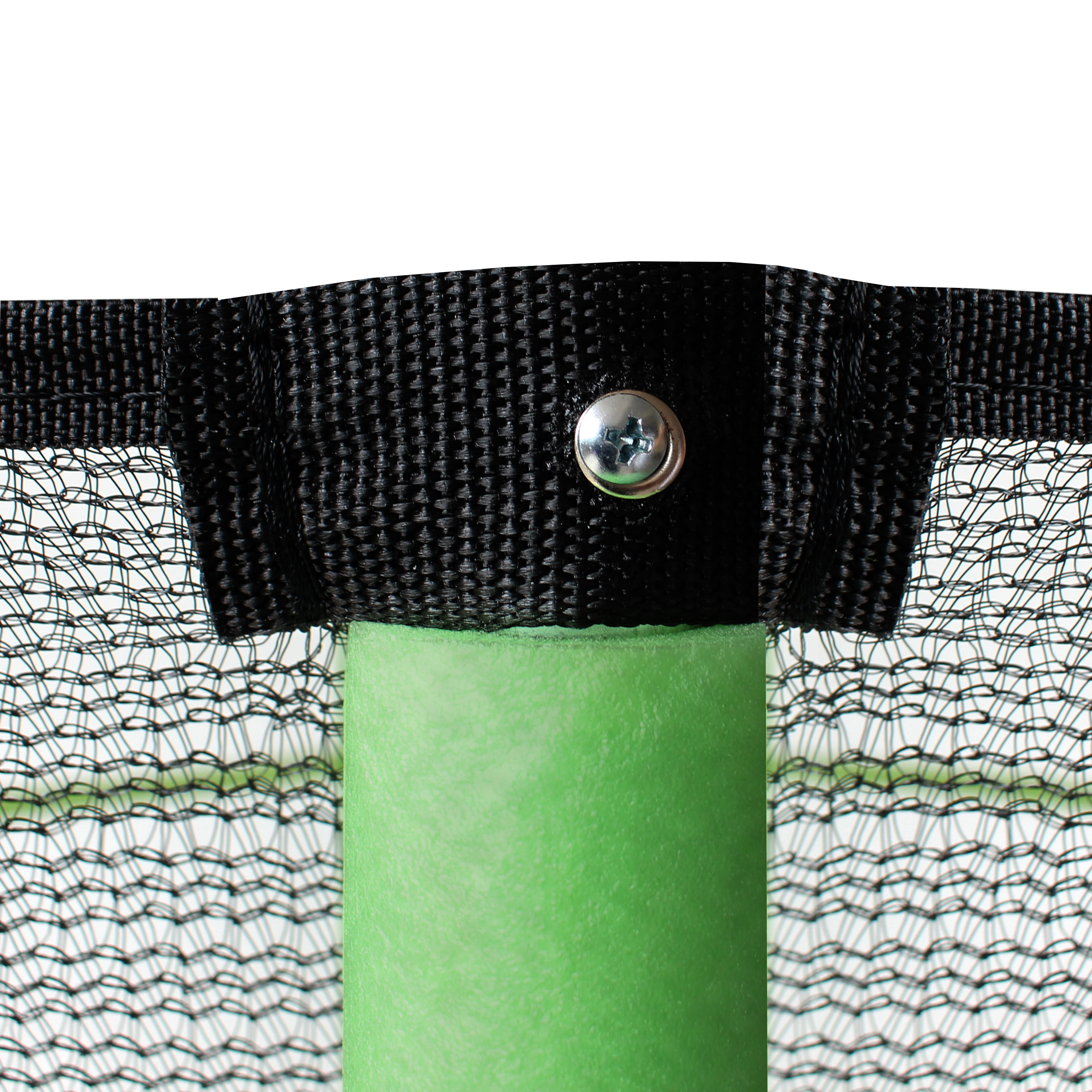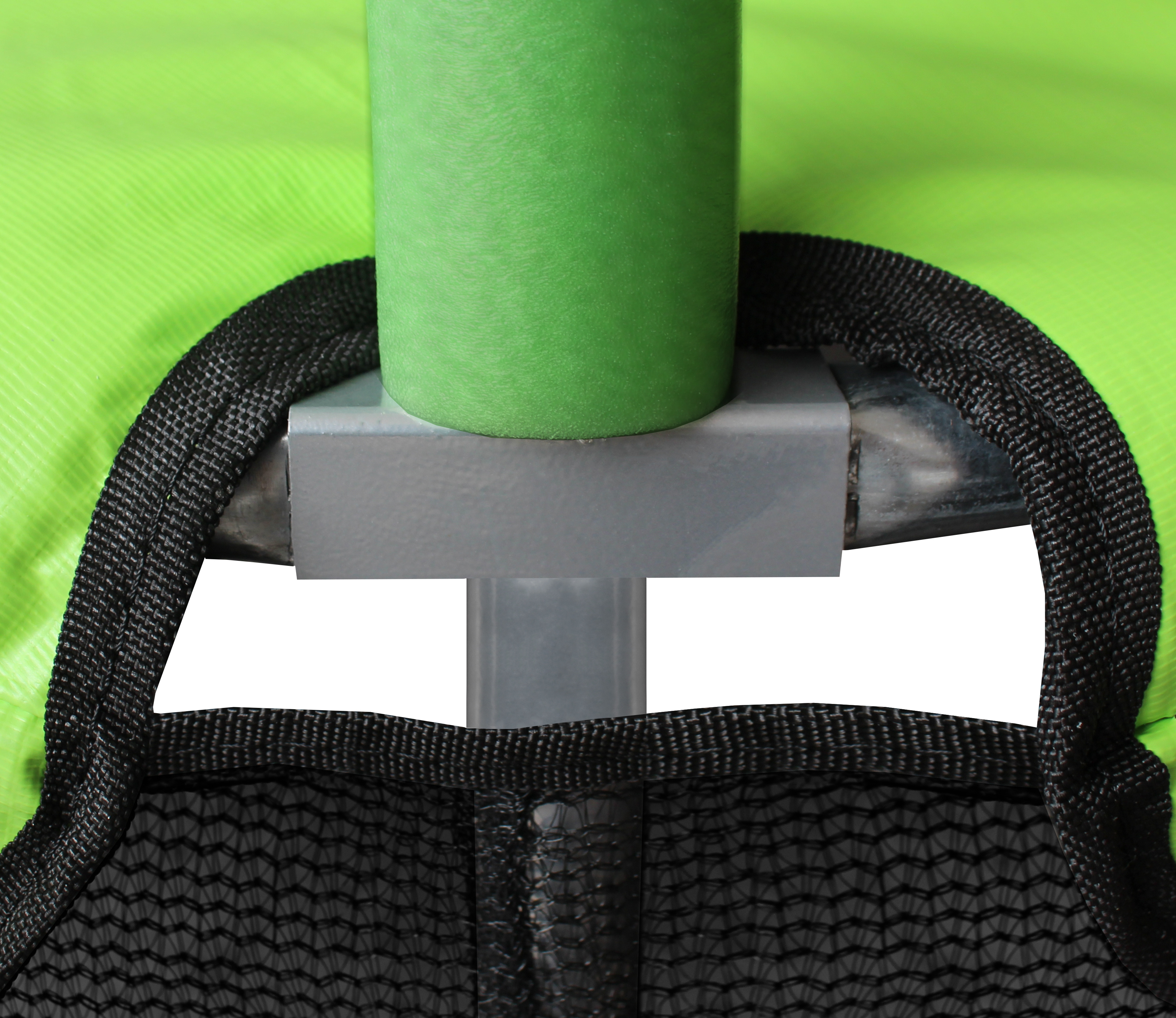 Maximální možnou bezpečnost trampolíny pak zajištuje polstrovaný obvodový pás (kryt pružin), vyrobený z PVC, který překrývá gumičky po celém obvodu trampolíny.