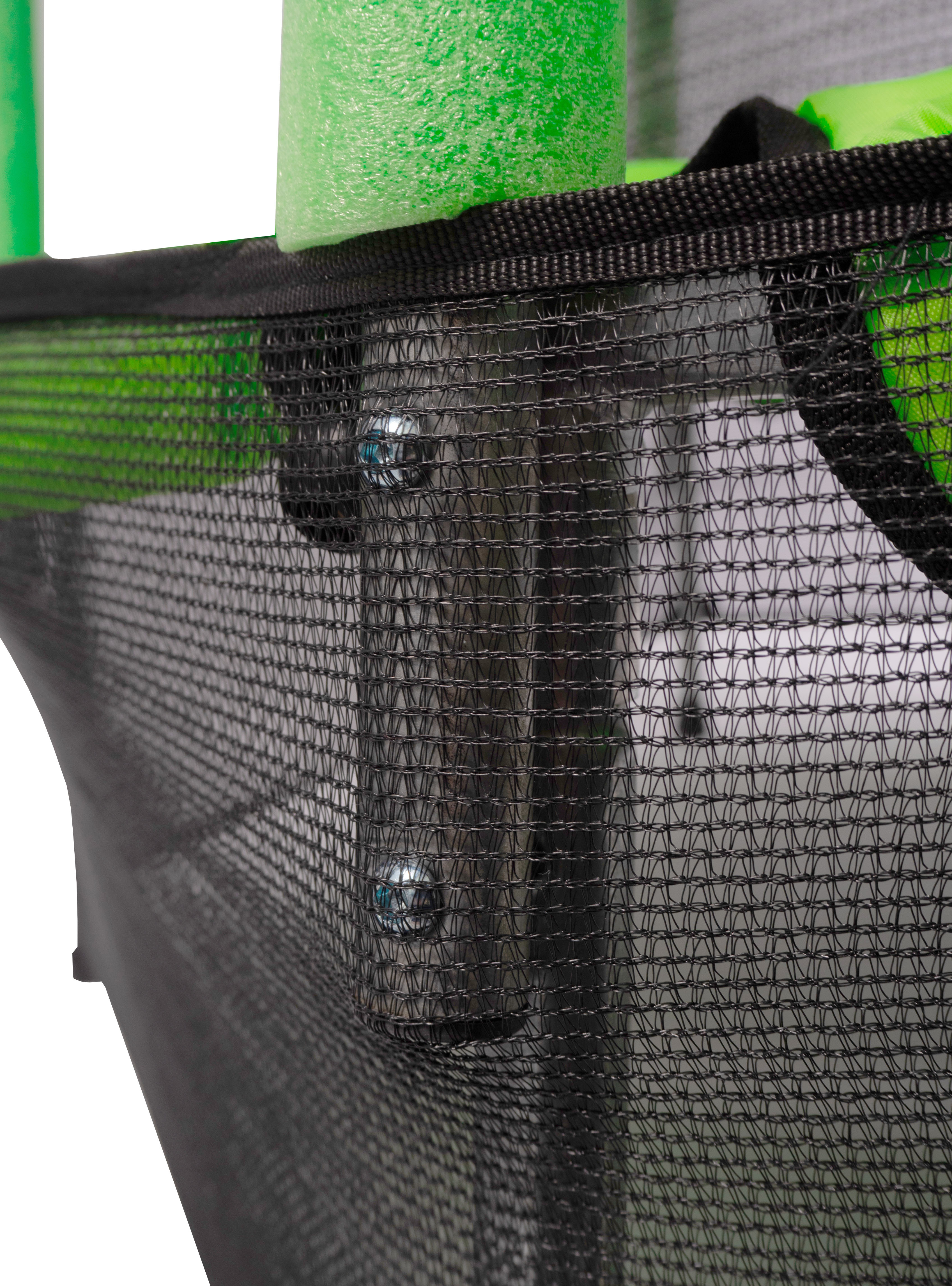 Maximální možnou bezpečnost trampolíny pak zajištuje polstrovaný obvodový pás (kryt pružin), vyrobený z PVC, který překrývá gumičky po celém obvodu trampolíny.