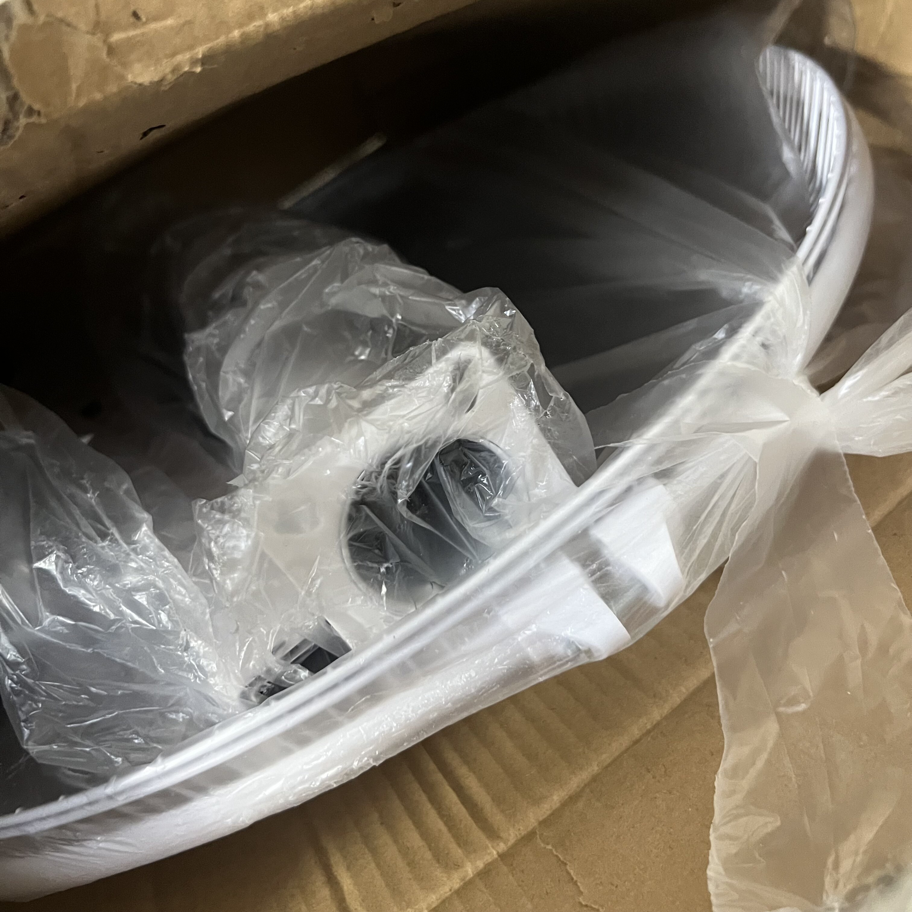 Tento ventilátor má poškozený plastový kryt v důsledku přepravy.