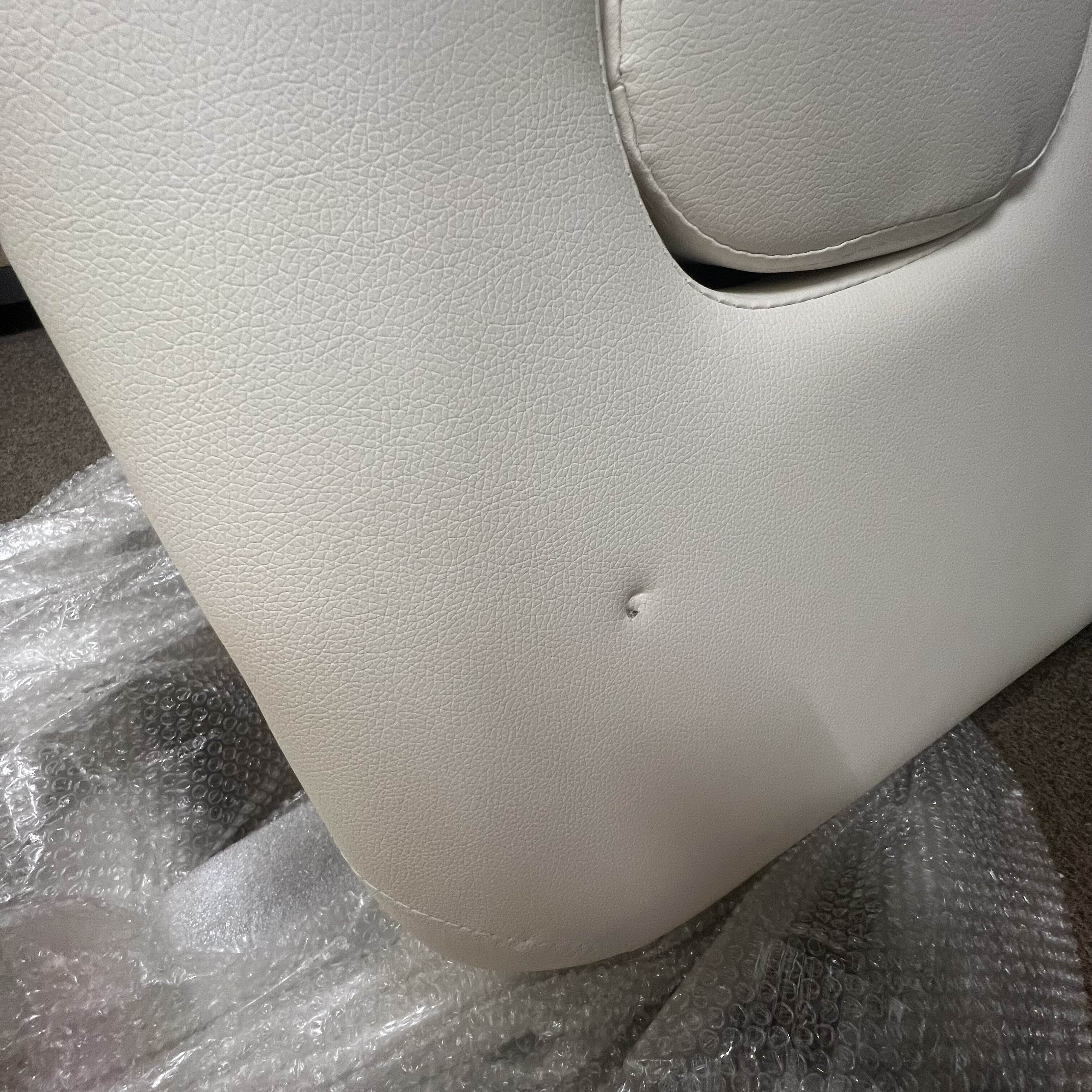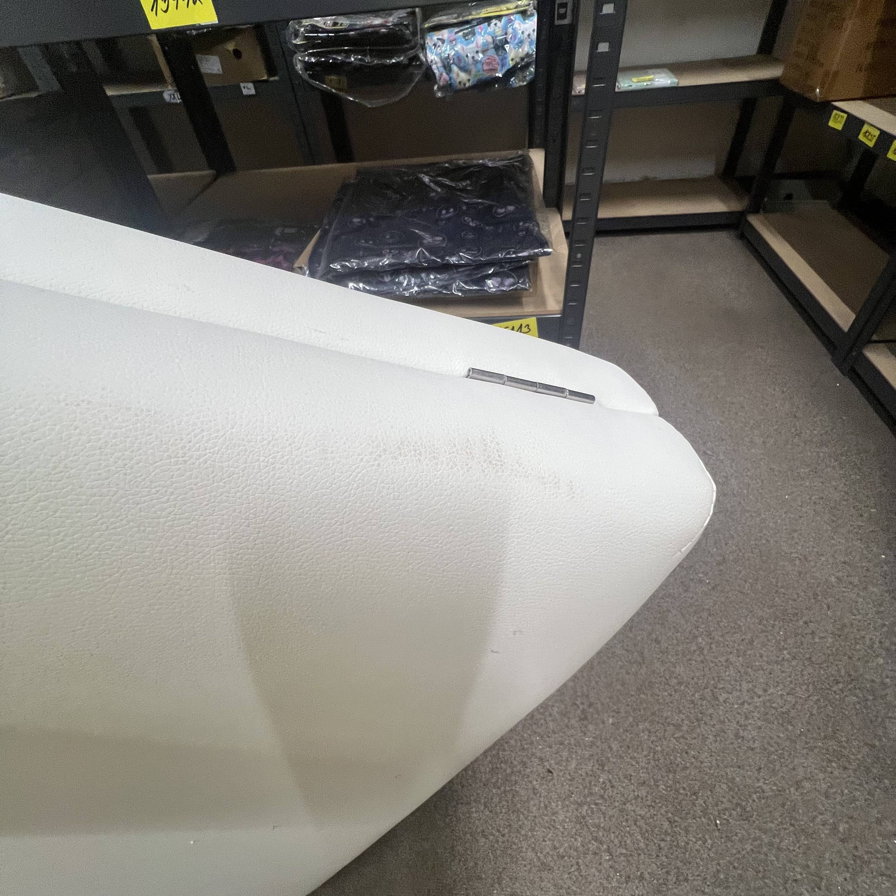 Masážní lehátko má v jednom místě díru a je mírně špinavé.