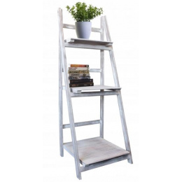 Regál tvoří skládací žebříková konstrukce, na níž jsou upevněné tři poličky, které se směrem nahoru zužují.