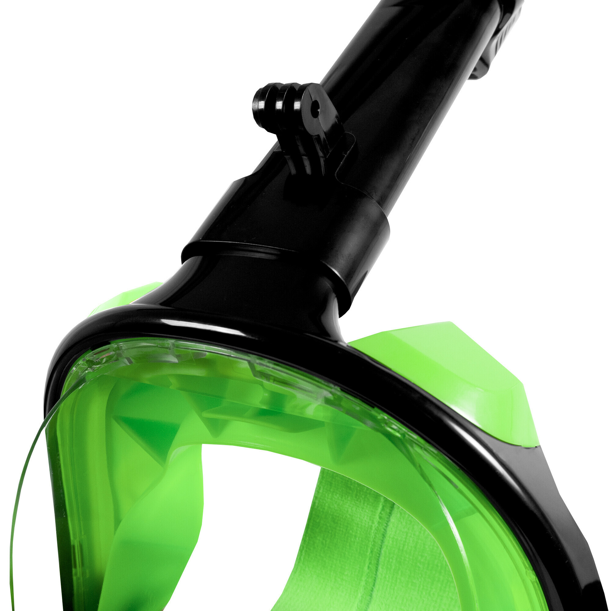 Textilními nastavitelnými pásky lze přizpůsobit velikost masky pro maximální pohodlí. Šnorchlovací maska se nezamlžuje a umožňuje 180° výhled.