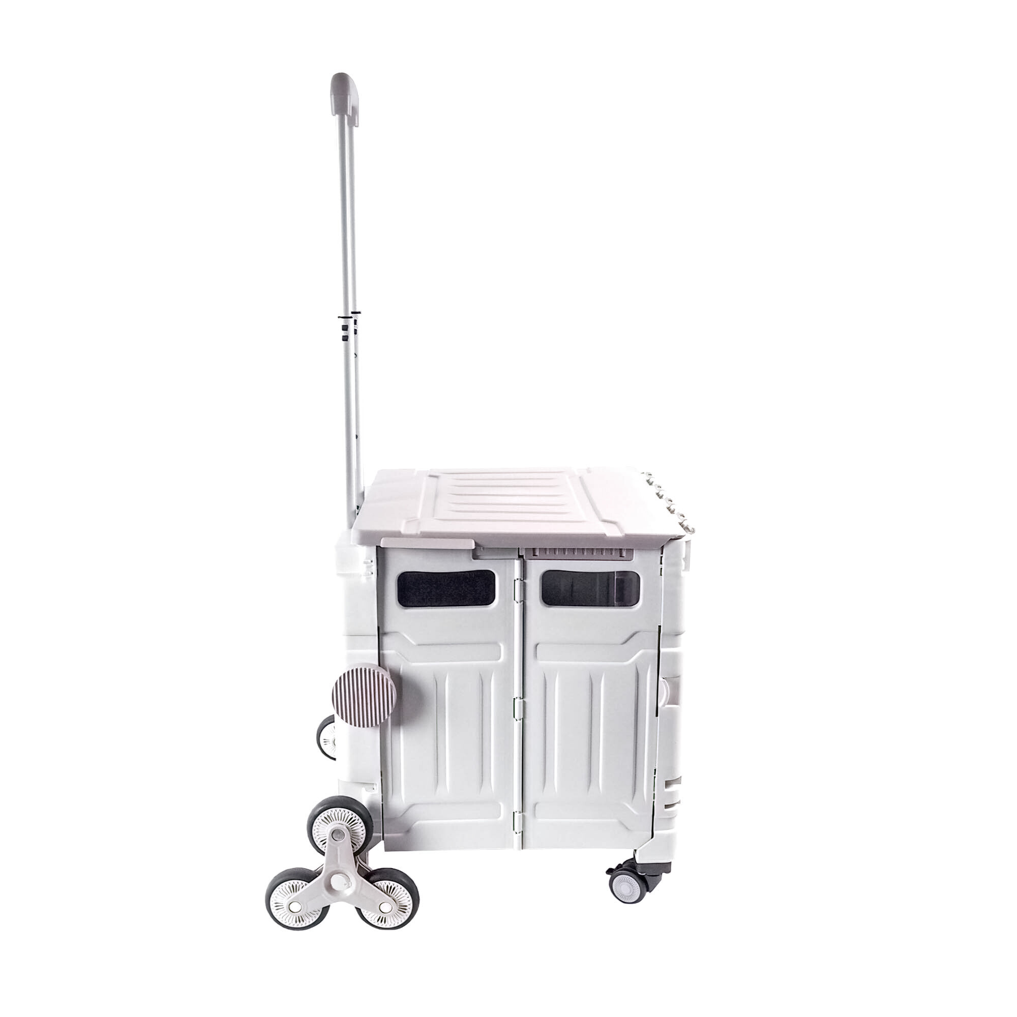 Jednou z nejvýraznějších vlastností tohoto skládacího boxu je jeho speciální dvojice trojúhelníkových koleček na zadní straně. Tato kolečka jsou navržena tak, aby usnadnila pohyb po schodech, což znamená, že můžete snadno vyjíždět a sjíždět ze schodů bez zbytečné námahy. Už žádné tahání těžkých břemen po schodech s tímto boxem to zvládnete s lehkostí.