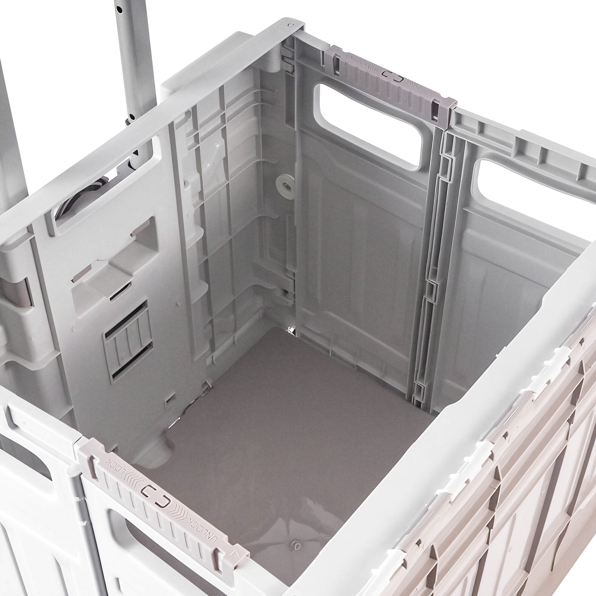 Skládací box na kolečkách je vyroben z vysoce kvalitního materiálu PP, který je známý svou odolností a dlouhou životností. Tento materiál zajišťuje, že box je nejen lehký, ale také dostatečně pevný, aby unesl až 70 kg nákladu.