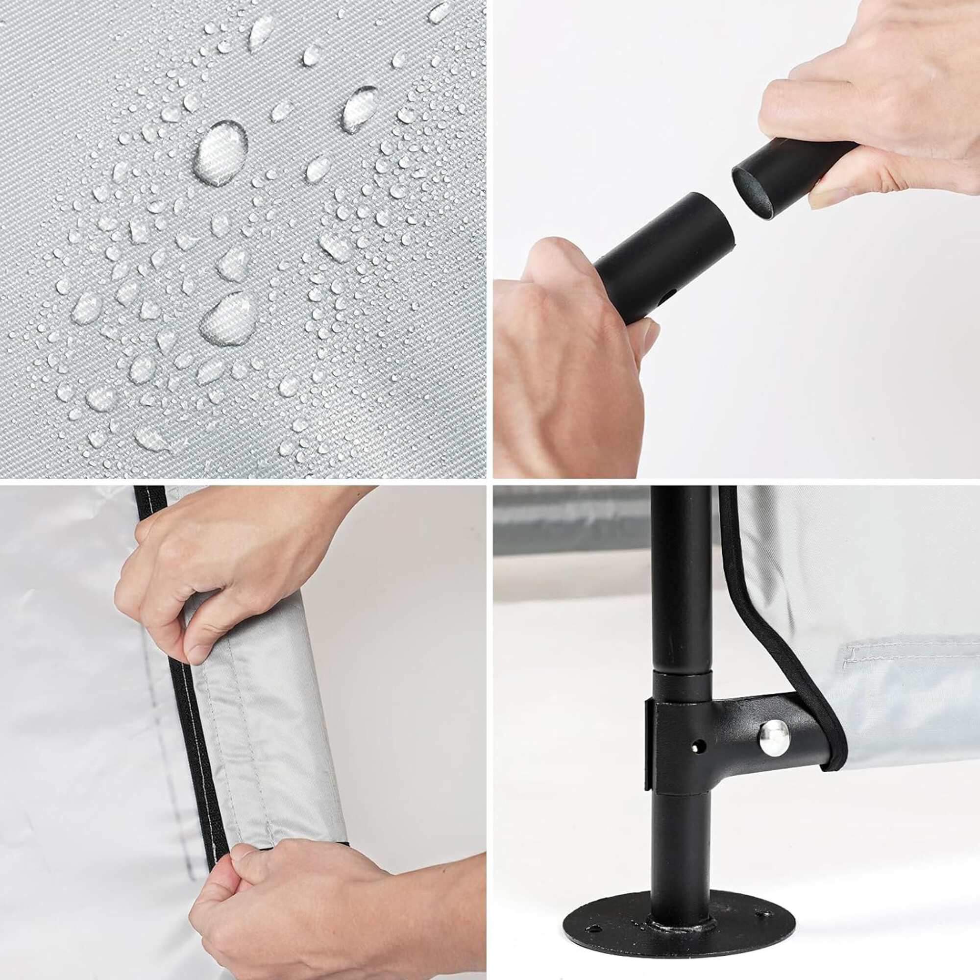 Přístřešek se skládá ze 100% polyesterového potahu a pozinkovaných ocelových trubek.