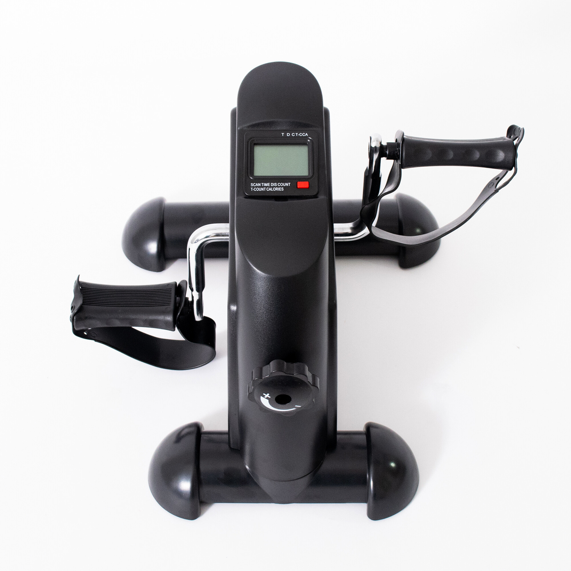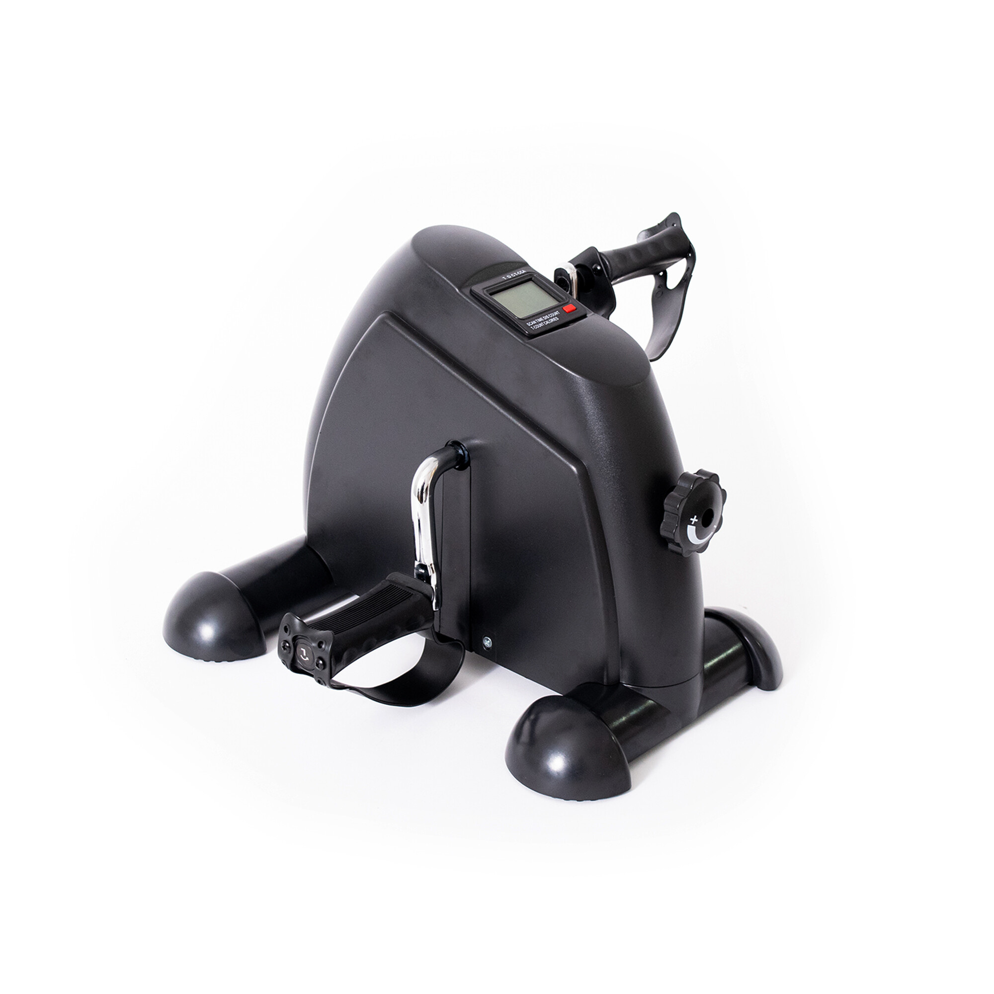 Aretačním kolečkem snadno nastavíte odpor, tréninkový počítač s LCD displejem napájený bateriemi potom zobrazí ujetou vzdálenost, čas, spálené kalorie a také počítá otáčky pedálů. Chcete-li procvičovat nohy, posaďte se na pohodlné křeslo nebo židli.