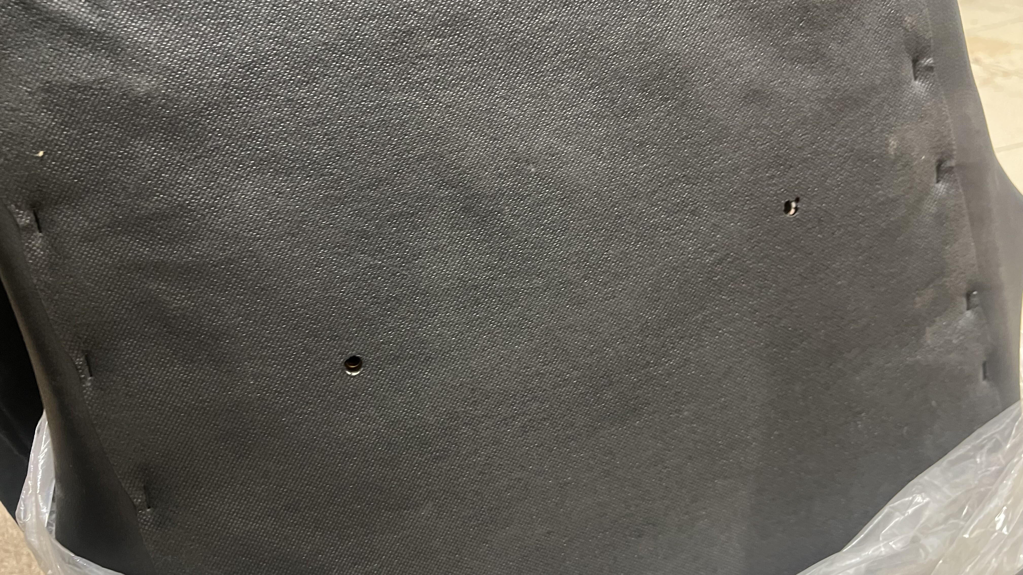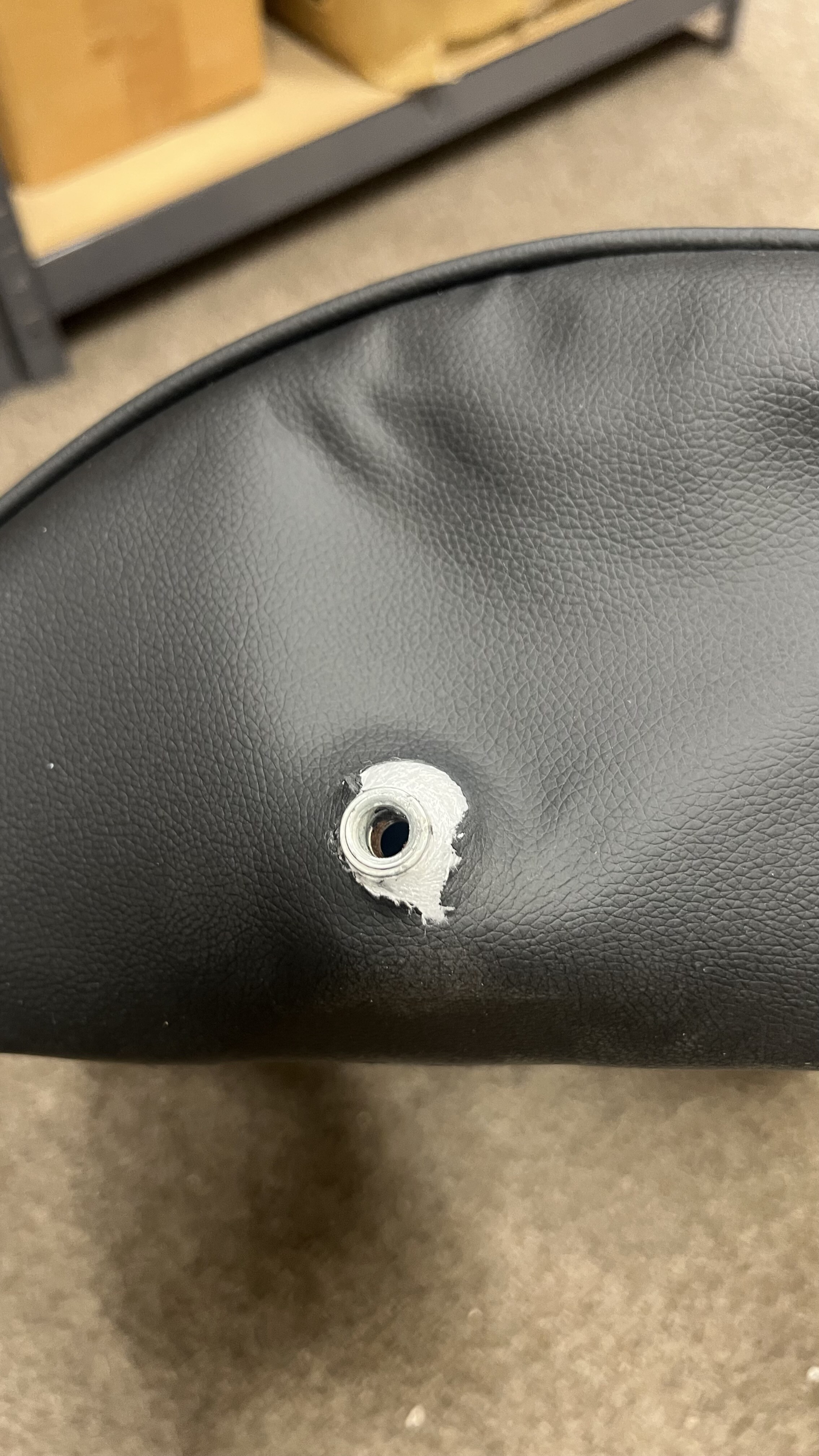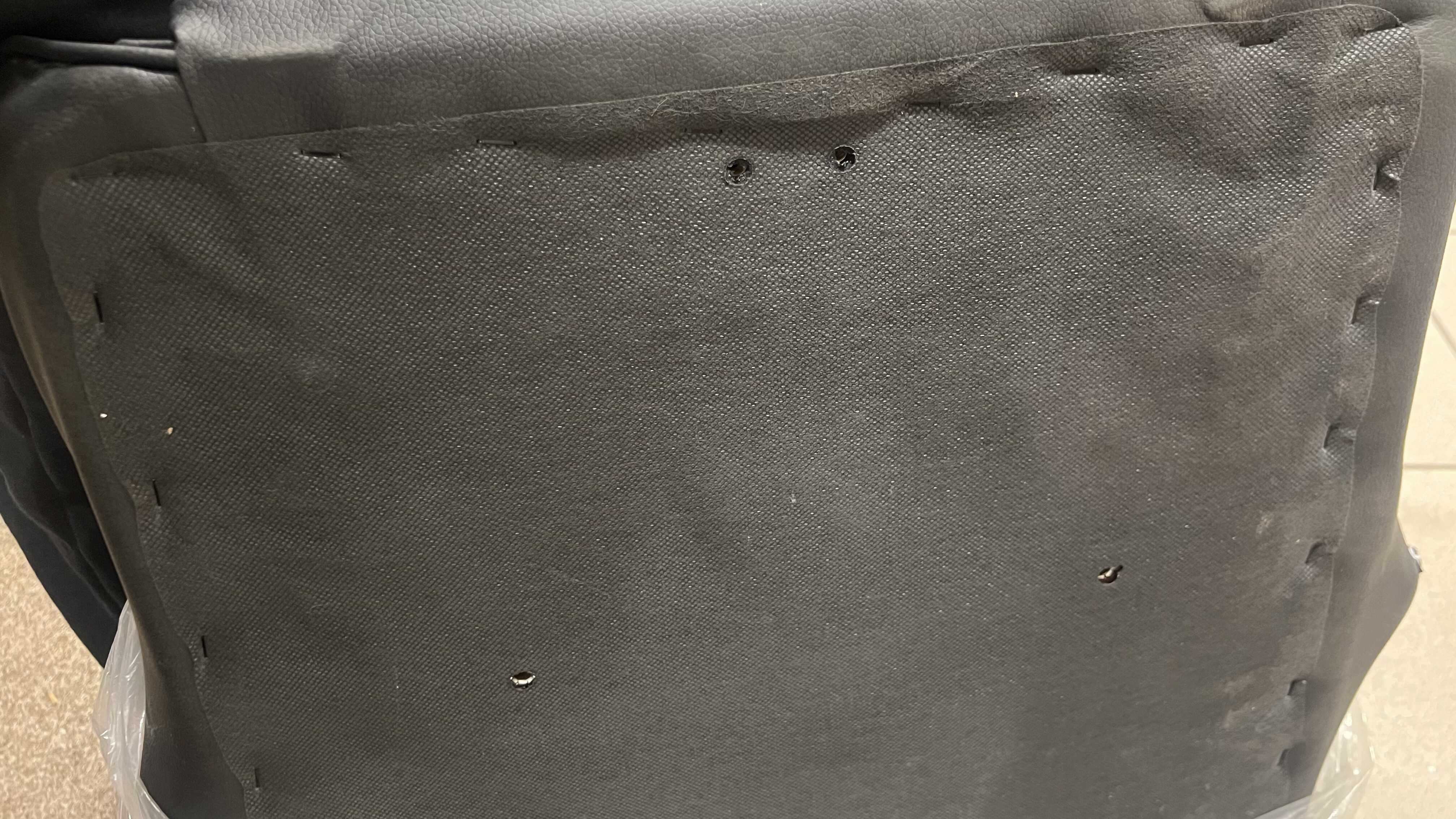 Produkt je plně funkční. Vada spočívá v poškození sedáku v místě u šroubu loketní opěrky.