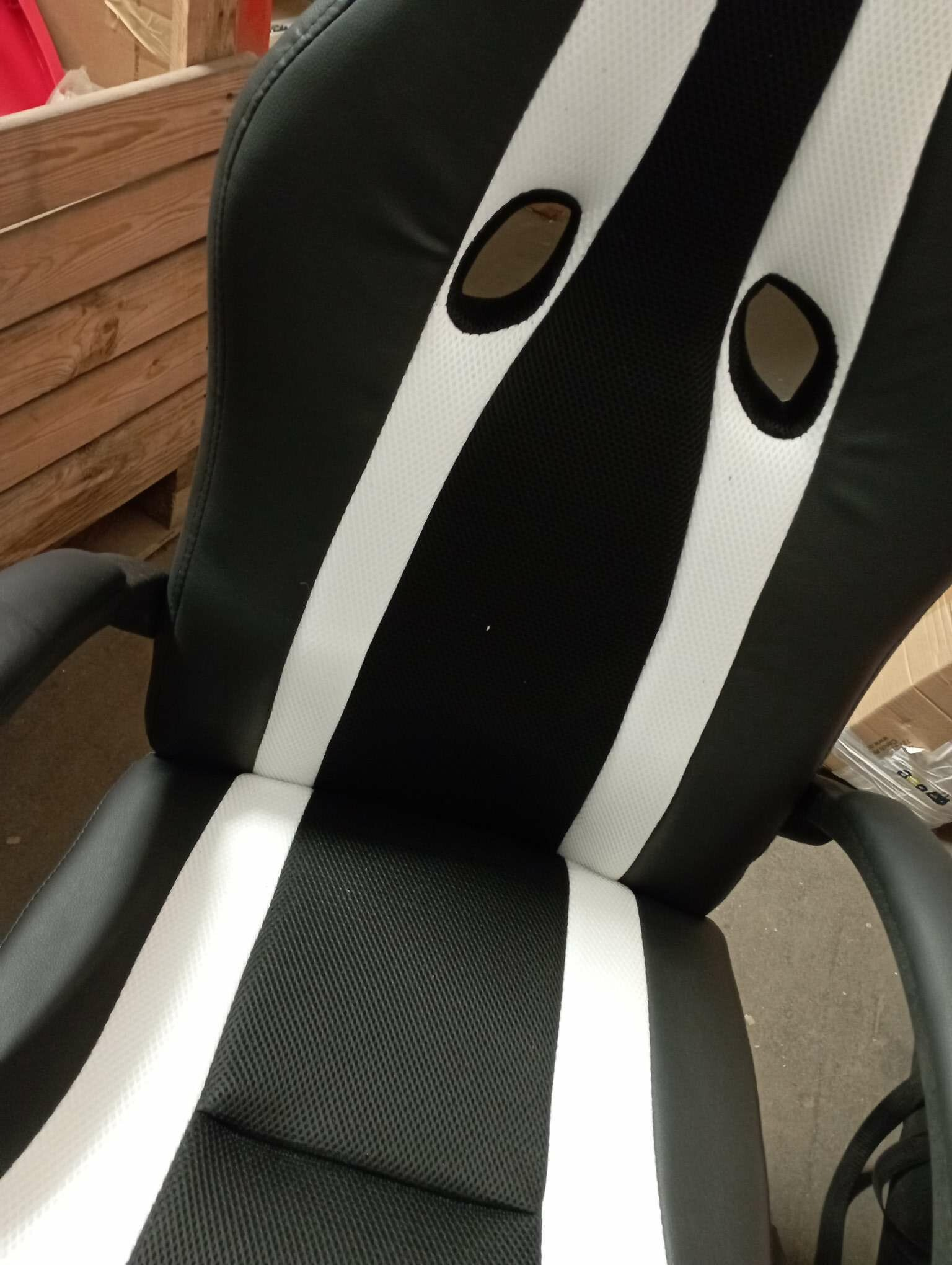 Židle je mírně špinavá, je mírně nakřivená, má malé "kosmetické" vady, 1x složená. Plně funkční.