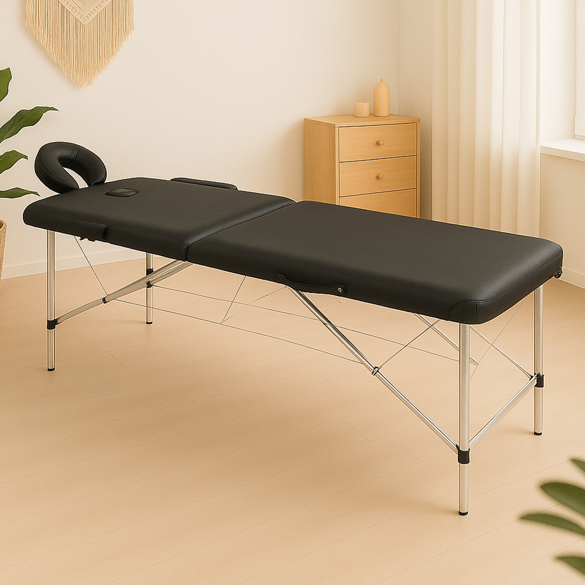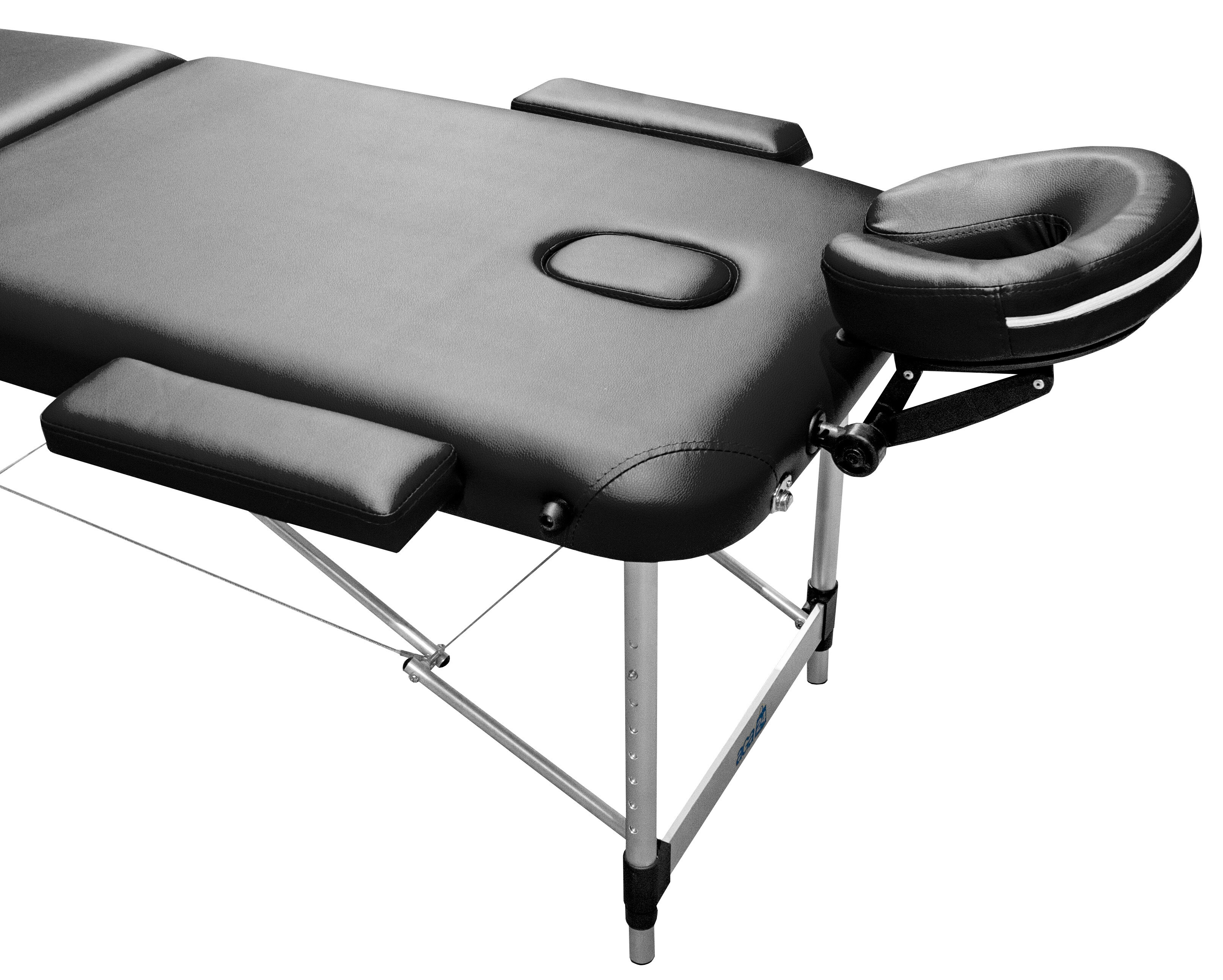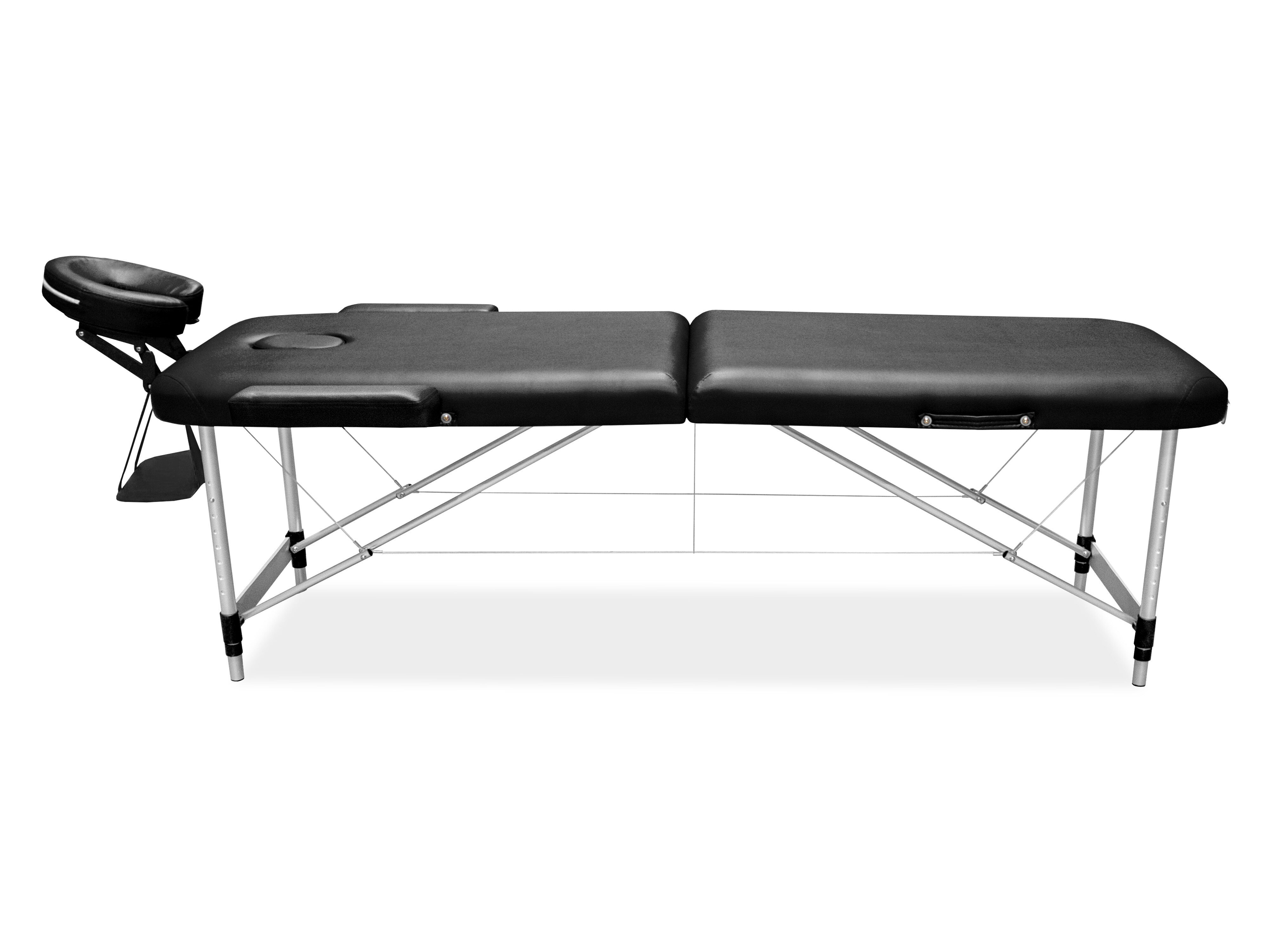 Velice pohodlné přenosné dvoudílné masážní lehátko s opěrkou hlavy, otvorem na obličej, loketními opěrkami.