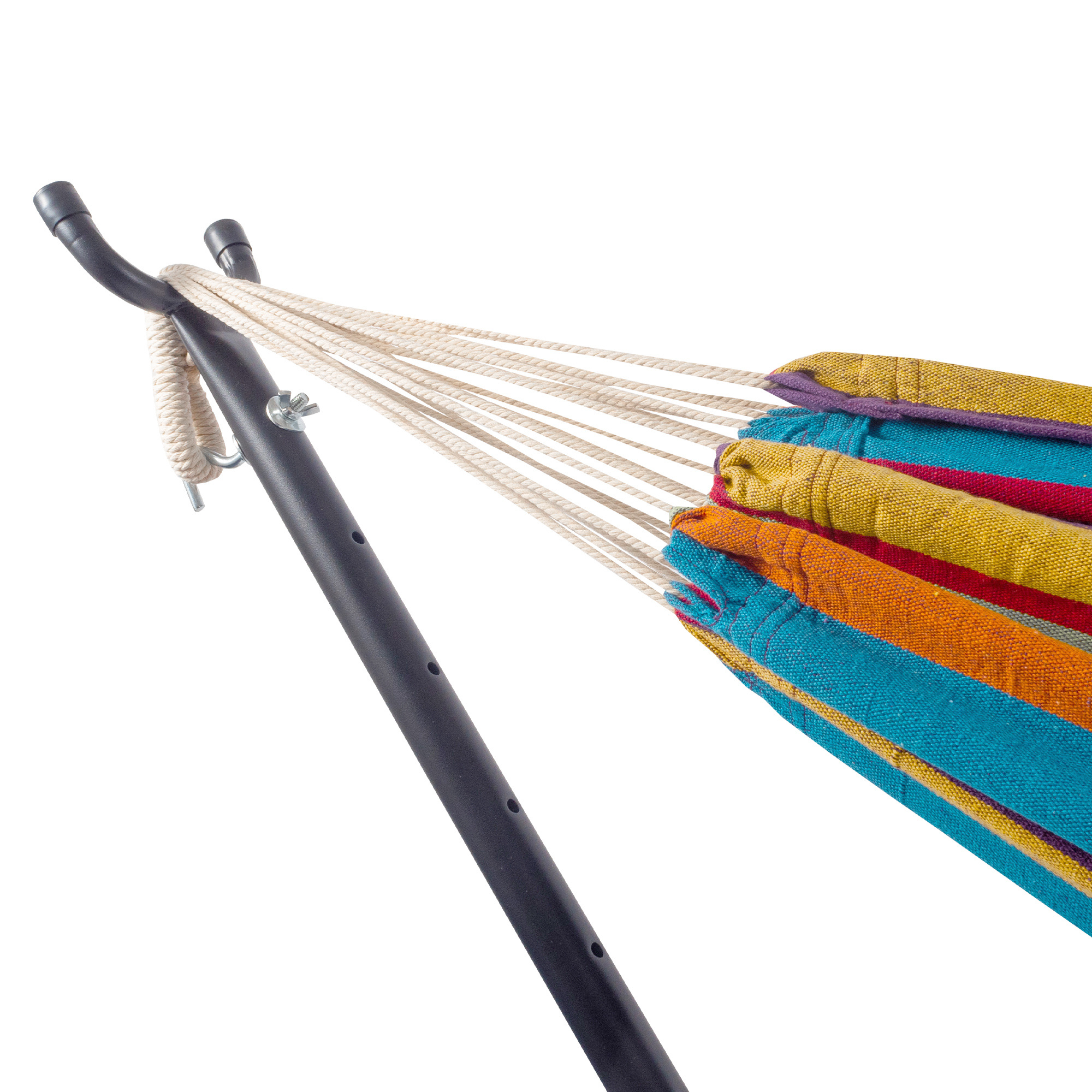 Již nemusíte brát ohledy na okolní podmínky a hledat vhodné místo, kam byste upevnili svou houpací síť - tato je dodávána včetně kovového rámu a je možné ji umístit prakticky kamkoliv a to během chvilky.