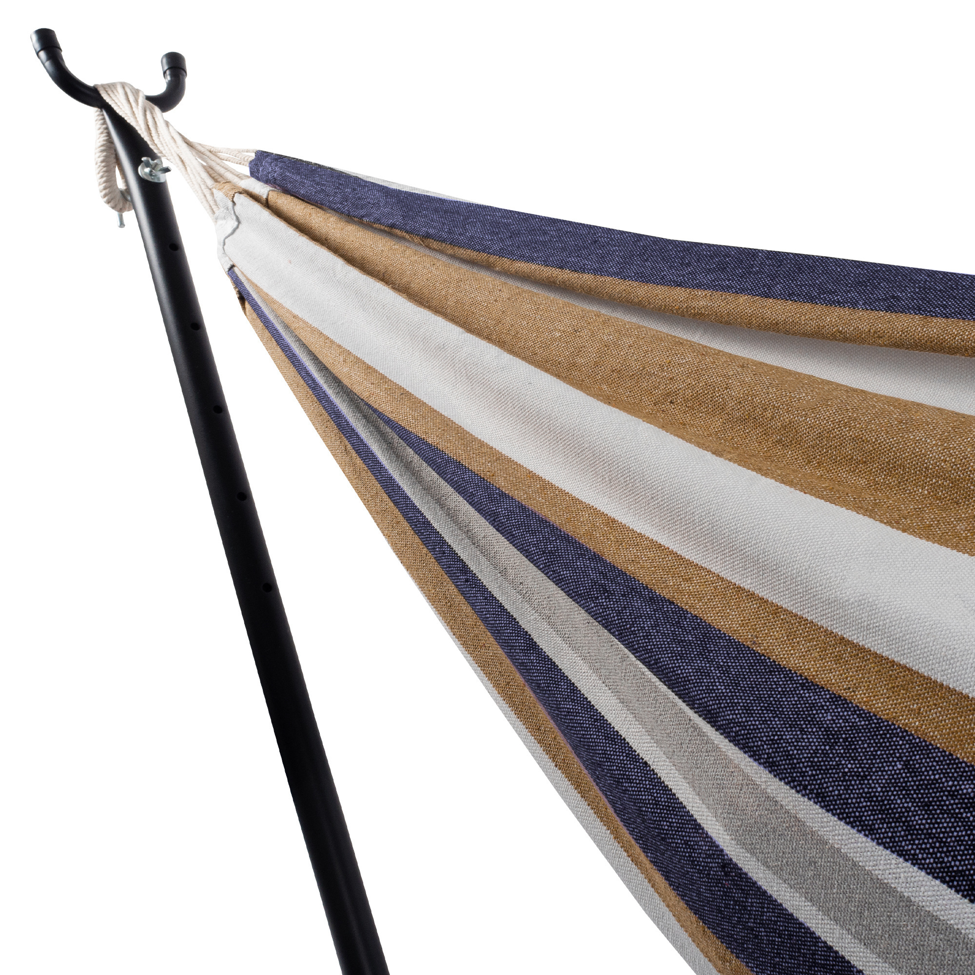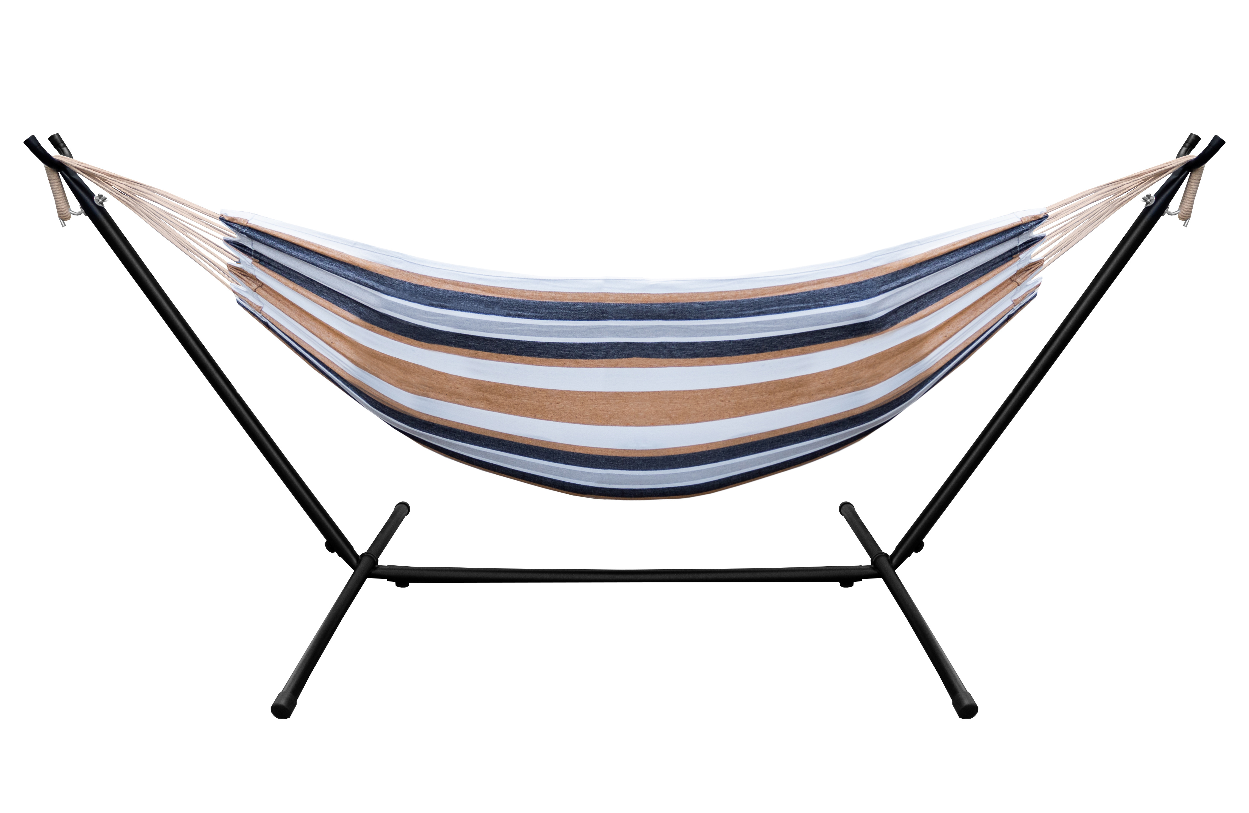 Sestava z odolného ocelového rámu lakovaného práškovou metodou, který díky své nosné konstrukci nabízí obzvláště bezpečné stání. Díky pohodlné polyesterové tkanině je houpací síť velmi pohodlná. Ležící plocha díky rozměrům 150x200 cm nabízí dostatek místa pro každého, dokonce i pro dva. Do maximální nosnosti 150 kg.